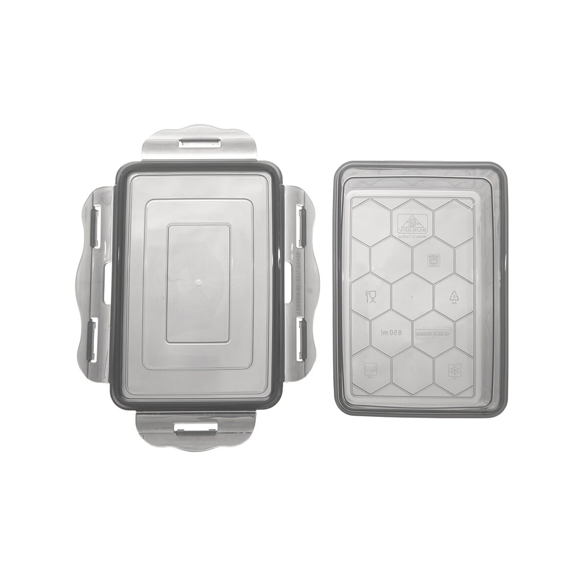 Kód produktu 127164Obdĺžniková plastová dóza GREY veľkosti 15x10,5x6 cm, so silikónovým tesnením a uzatváranie na 4 klipy vo viečku.