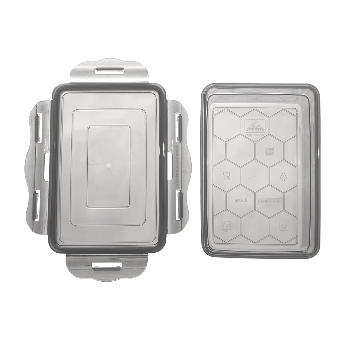 Kód produktu 127166Obdĺžniková plastová dóza veľkosti 18,5x13x9,5 cm, so silikónovým tesnením a uzatváranie na 4 klipy vo viečku.