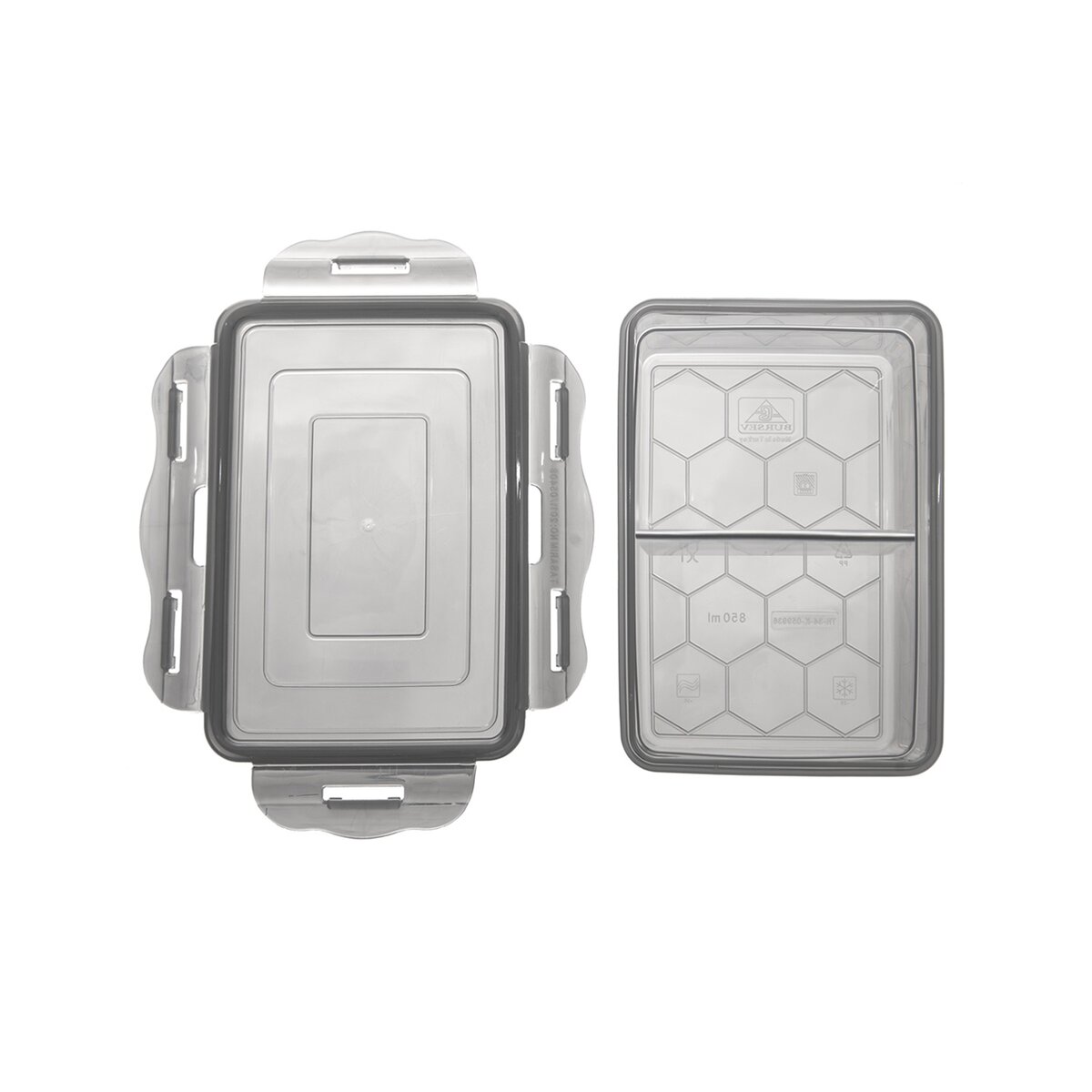 Kód produktu 127168Obdĺžniková plastová dóza veľkosti 15x10,5x6 cm, so silikónovým tesnením a uzatváranie na 4 klipy vo viečku. Je rozdelená na 2 časti.