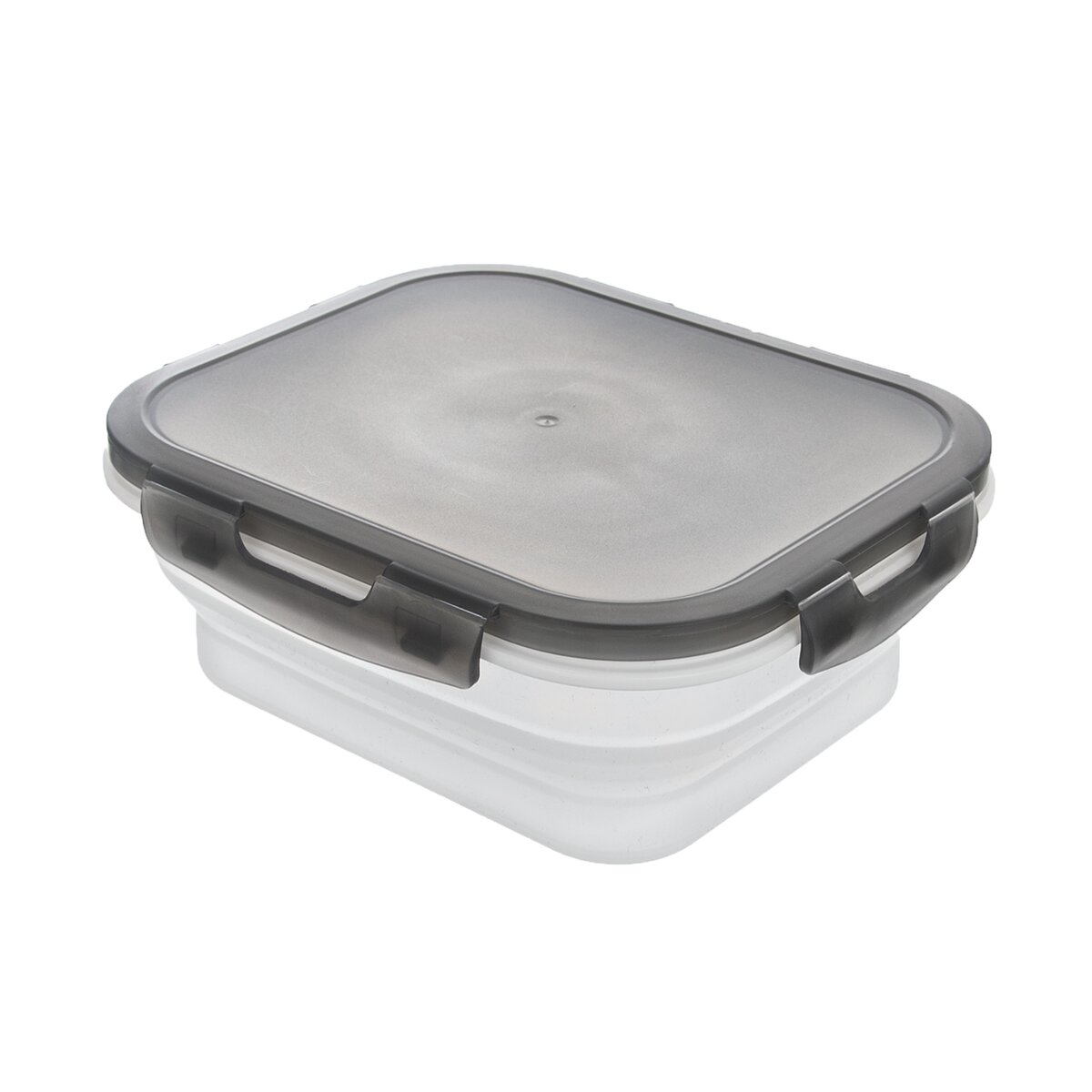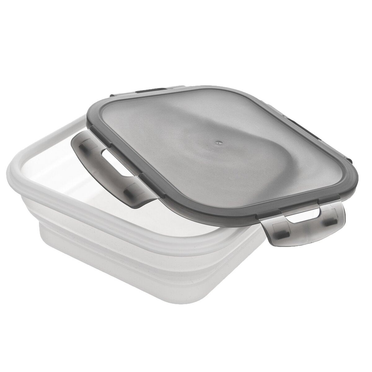 Kód produktu 127158Skladacia transparentná hranatá dóza objemom 0,78 l s tesnením a viečkom so 4 klipmi, vhodná na kempovanie, do karavanu aj na uloženie pokrmov do práce alebo na desiatu do školy. Umožňuje ohrev v mikrovlnnej rúre a umývanie v umývačke.