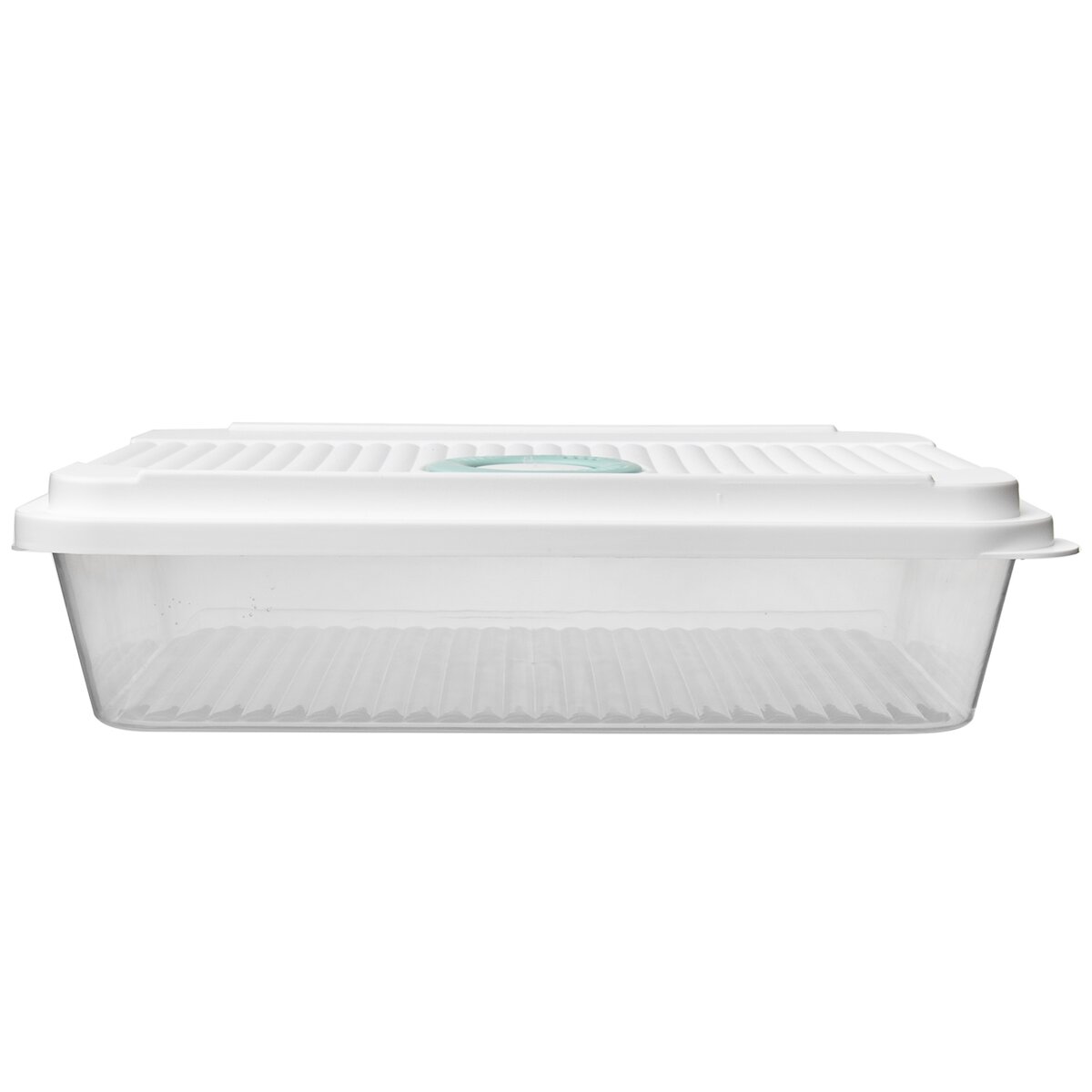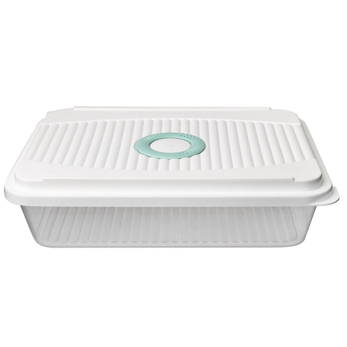 Dóza s vekom na ukladanie a prenášanie. Vo viečku ovládacie otváranie. Materiál: plast. Rozmery: objem 3,5 l, 32,5x23,5x8 cm. Použitie od -25°C do 95°C. Vhodná do chladničky, mrazničky a umývačky riadu.