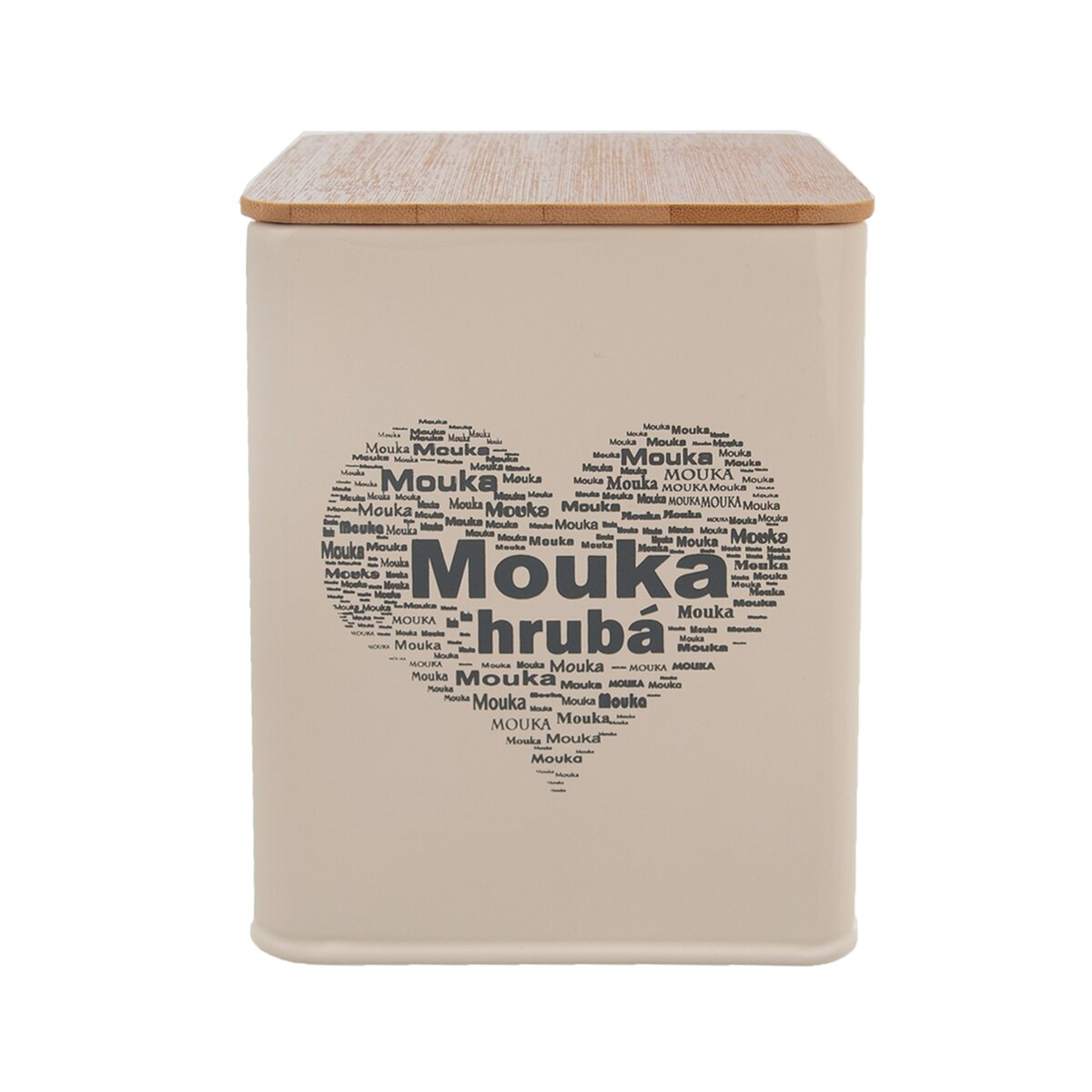 Kód produktu 153698Hranatá plechová dóza s dizajnovým nápisom HRUBÁ MOUKA v tvare srdca, uzavretá bambusovým viečkom. Nielen praktický, ale aj dizajnový kúsok.