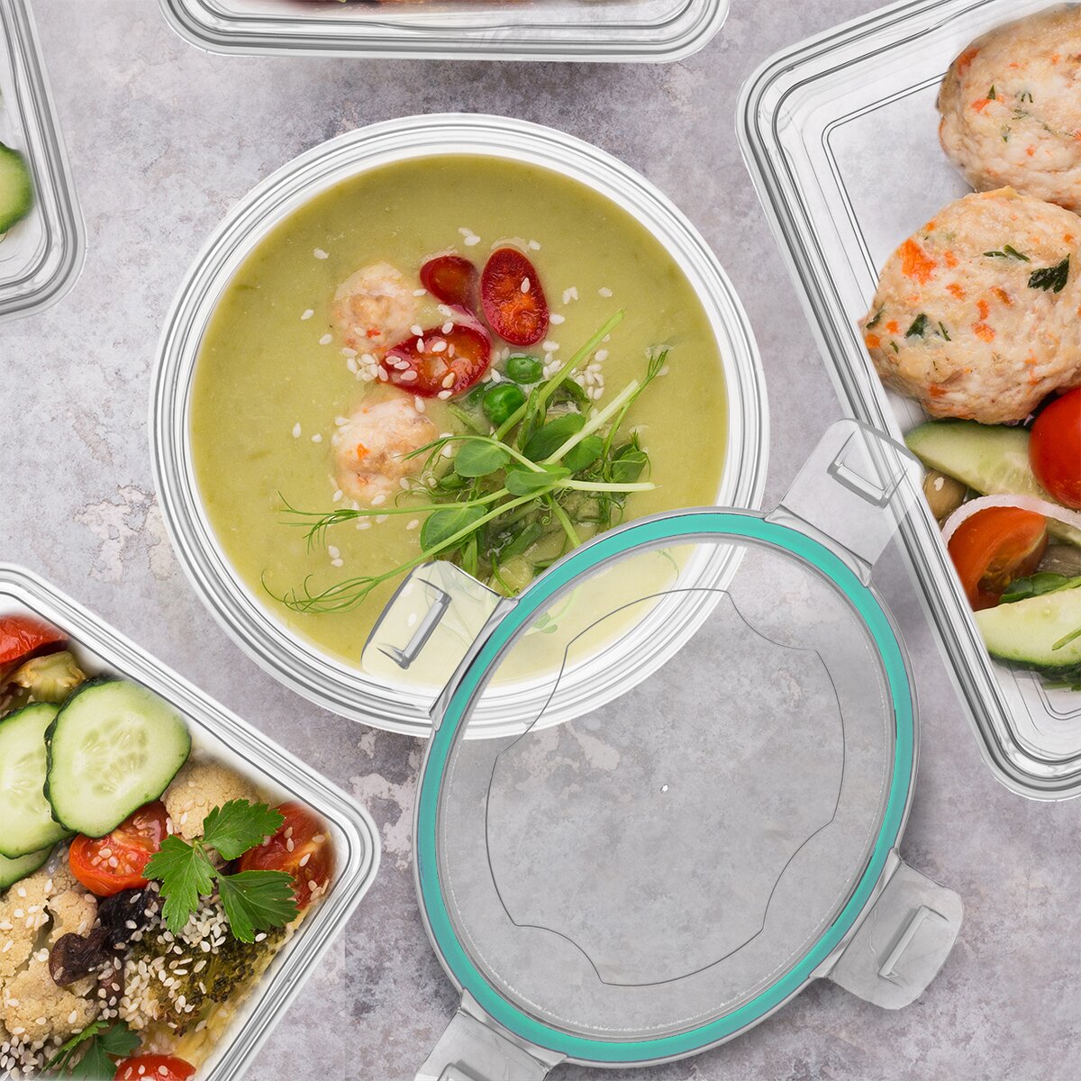 Vďaka veku na 4 klipy a tesneniu je zaistené pevné uzavretie nádoby. Navyše je transparentný, vďaka čomu ihneď vidíte, aké pokrmy sa skrývajú vo vnútri. Možno ju tiež bez obáv vložiť do chladničky, ohrievať v mikrovlnnej rúre bez viečka a umývať v umývačke riadu.