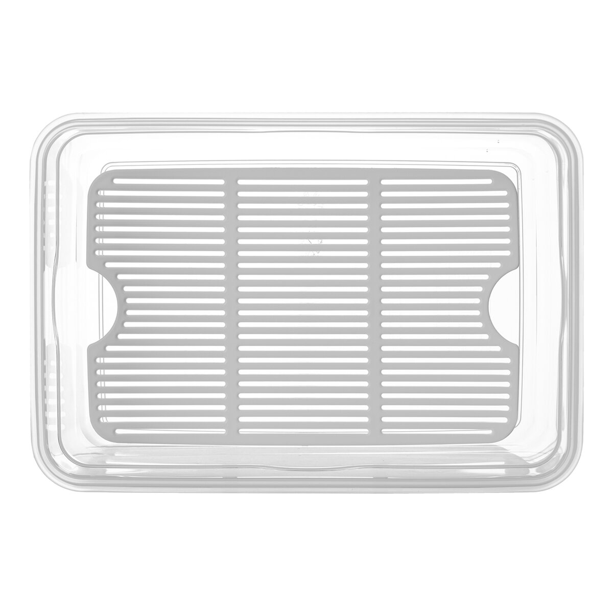 Kód produktu 123838Obdĺžniková plastová dóza PRIM s objemom 2,4 l s uzatváraním na klipy a silikónovým tesnením. Plastová mriežka vo vnútri umožňuje potravinám dýchať.