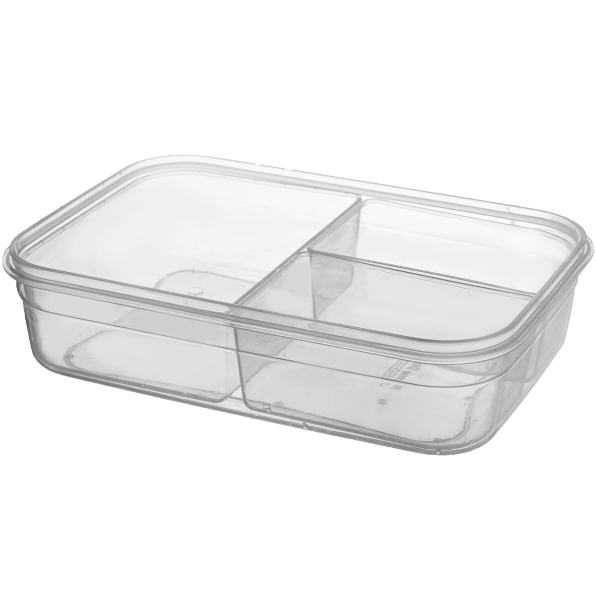 Kód produktu 127155Transparentná plastová hranatá dóza s tromi menšími miskami v celkovom objeme 1 l, ideálne na prevážanie obeda, desiaty alebo uloženie hotových pokrmov v chladničke i mrazničke. Pevné uzatvorenie zaistí silikónové tesnenie a klipy na viečku.