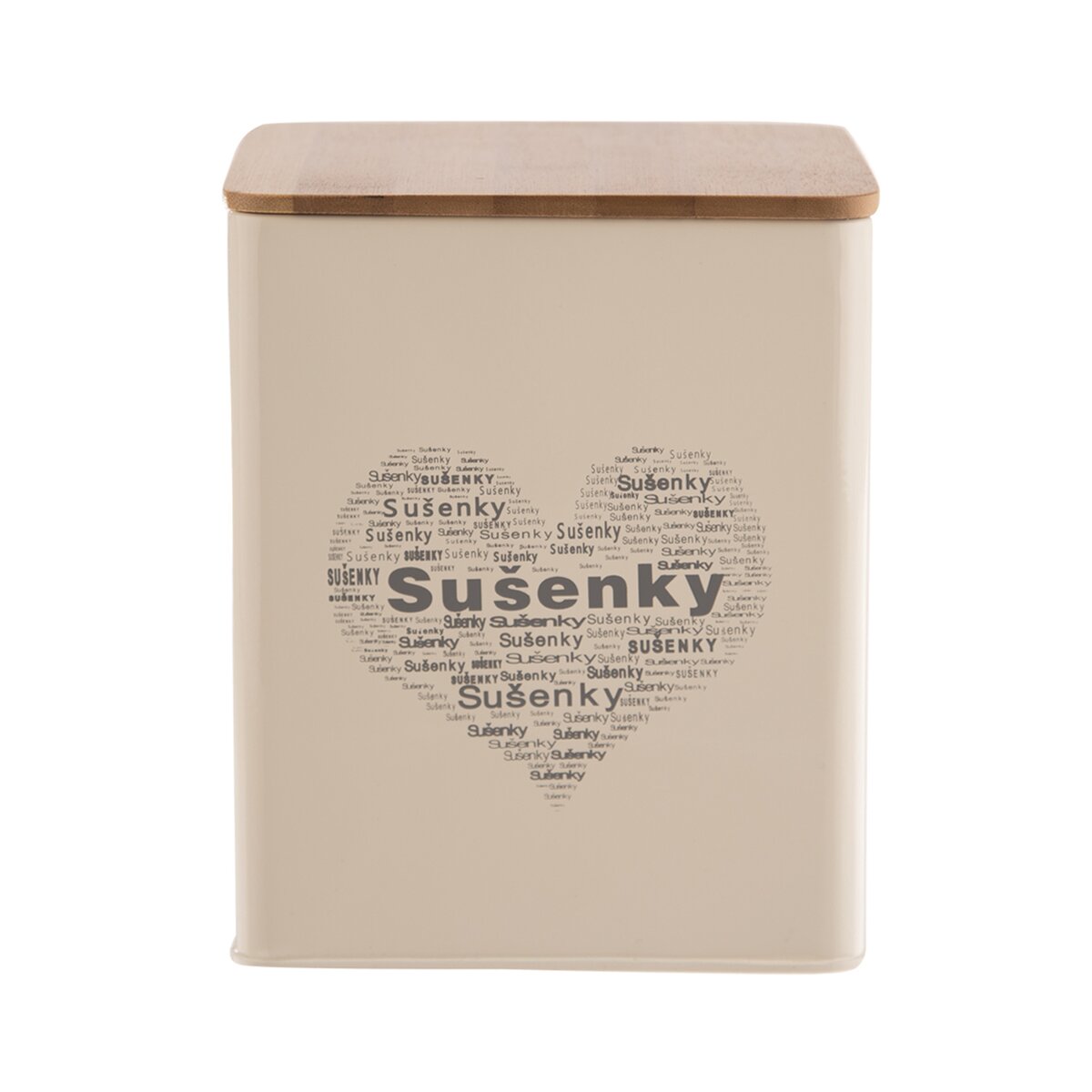 Táto plechová dóza v smotanovej farbe nesie nápis SUŠENKY. Hodí sa preto nielen na skladovanie sušienok, ale aj obľúbených druhov pišingrov, piškót, perníkov a ďalších cukroviniek. Súčasťou je aj drevené viečko so silikónovým tesnením, ktoré zaručuje pevné uzavretie nádoby.