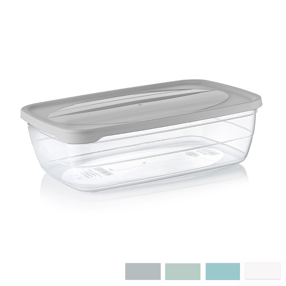 Kód produktu 124653Plastová obdĺžniková dóza TREND s objemom 2 l s farebným viečkom.