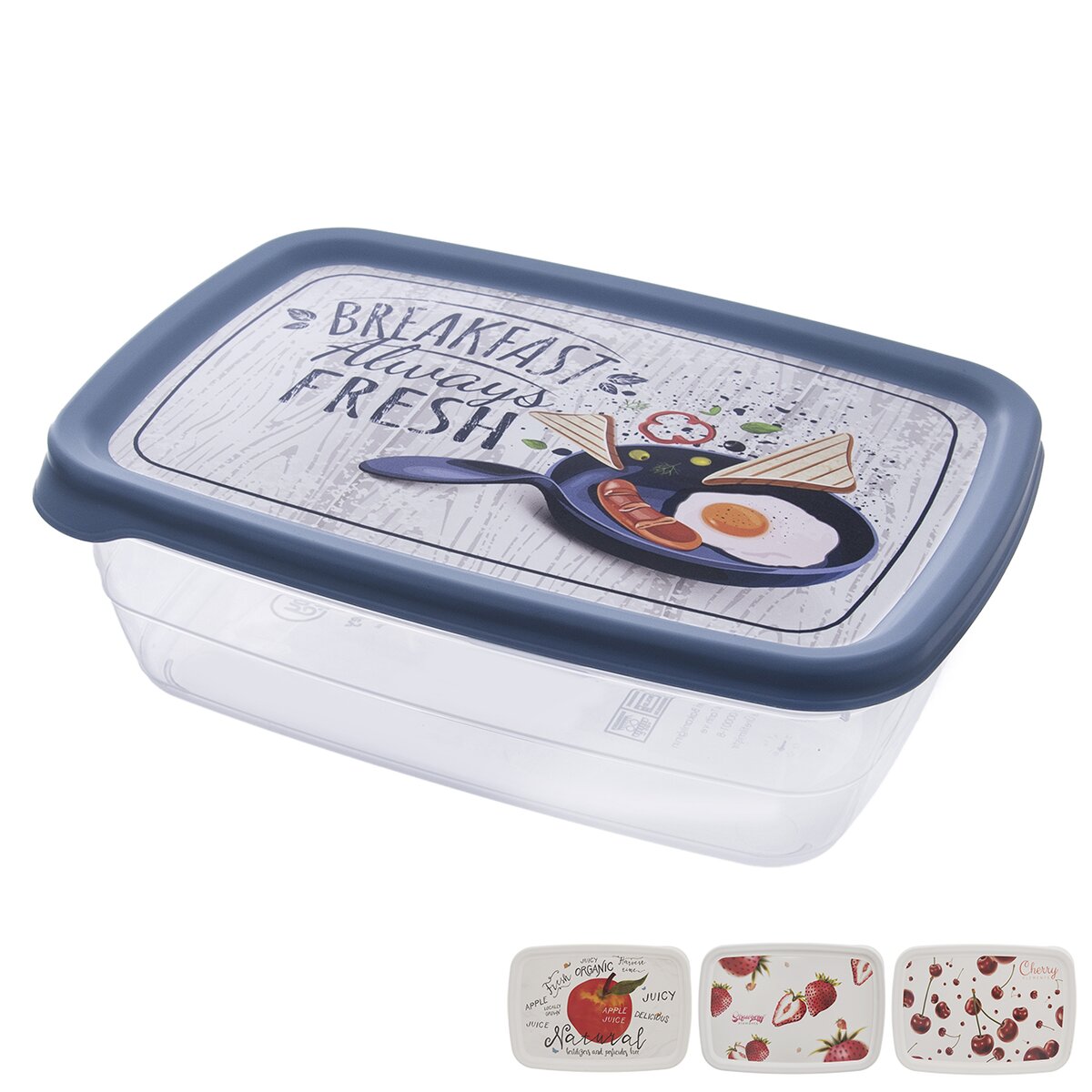 Kód produktu 127130Plastová obdĺžniková dóza TREND s objemom 1,2 l s viečkom vo farebnom dekore.