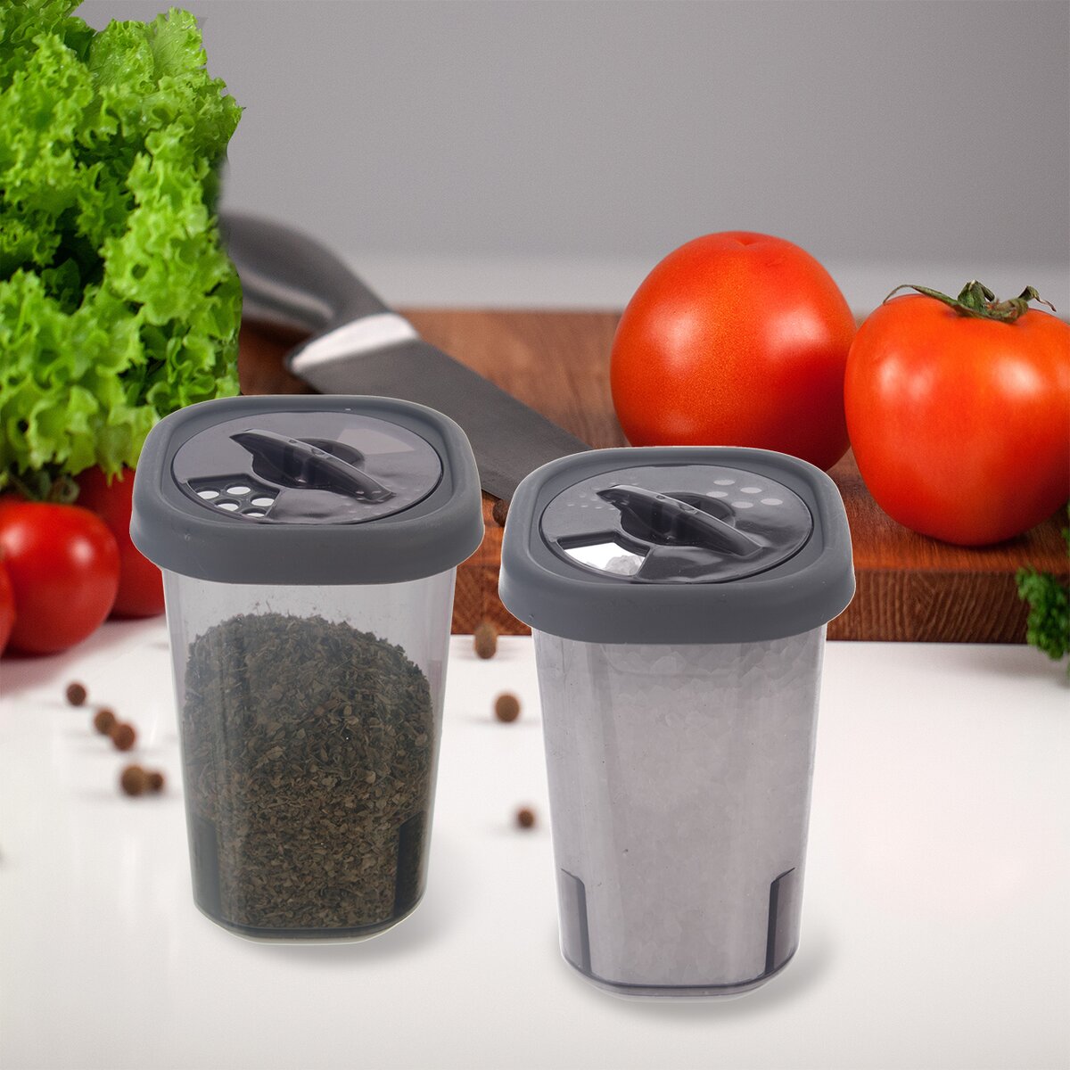 Viac informáciíMenší hranatý box so šedým viečkom sa hodí na uloženie korenia, sypkých dochucovadiel, soli, ktorú je potrebné bezpečne presypať z väčšieho balenia. Preveziete si ho na chalupu, študentskú internát aj na dovolenku v kempe či karavane. Stačí viečkom pootočiť a hneď máte rôzne typy otvorov, od veľkého otvoru, cez menšie dierky až po tie drobné.
