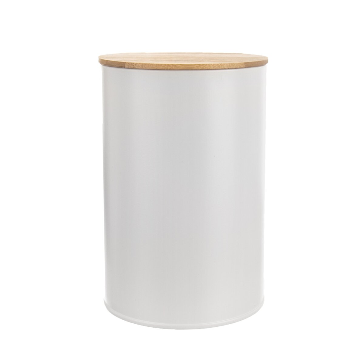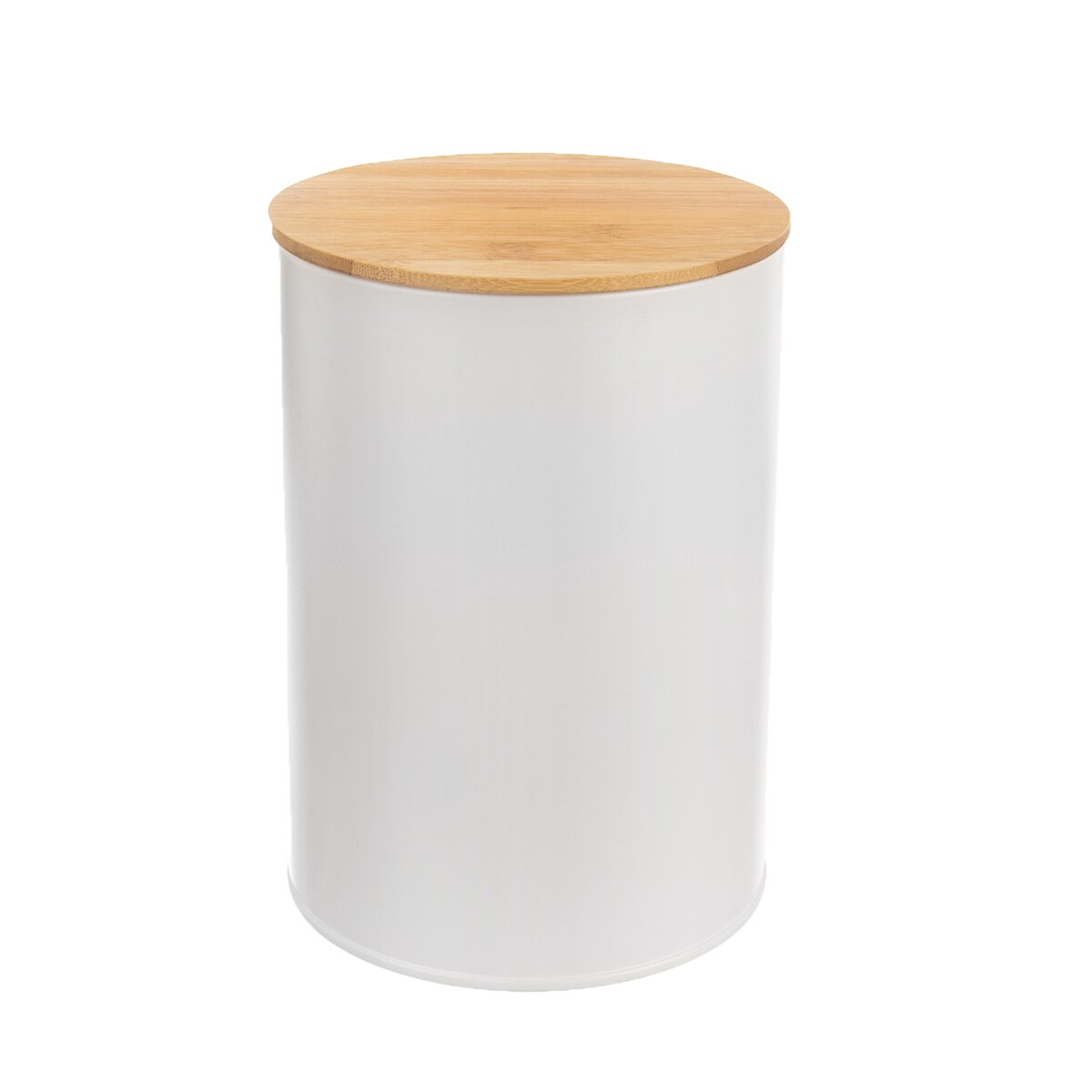 Kód produktu 127540Plechová biela dóza s objemom 1,3 l, s bambusovým viečkom a silikónovým tesnením, vhodná na uloženie múky, cestovín, ryže a iných sypkých surovín.