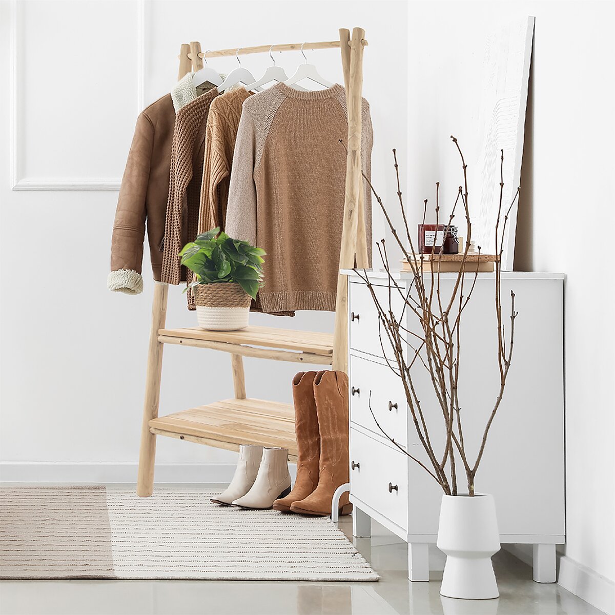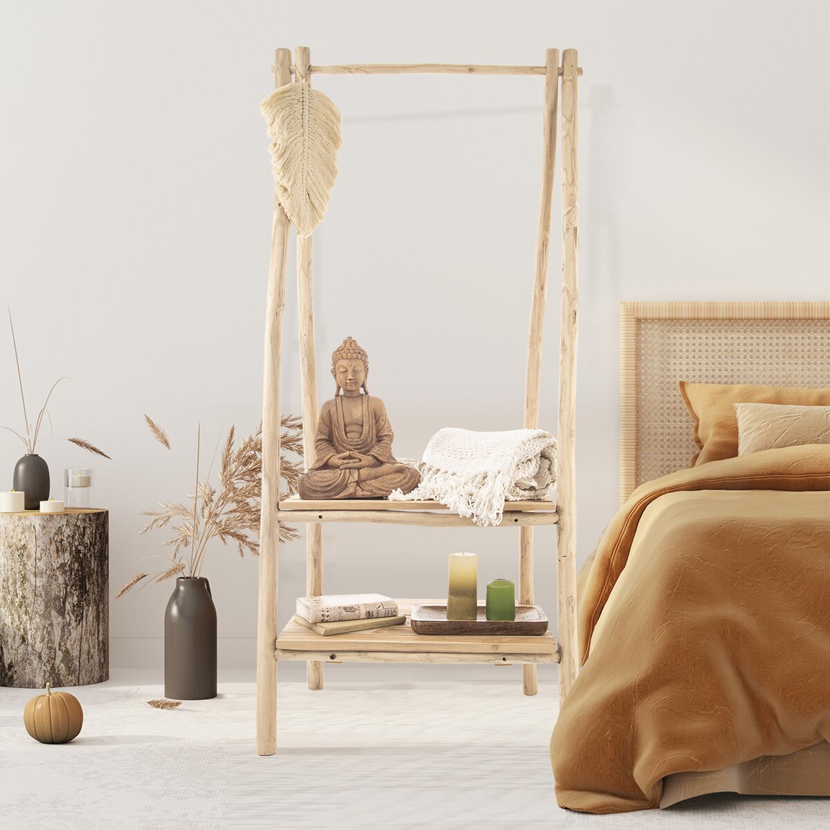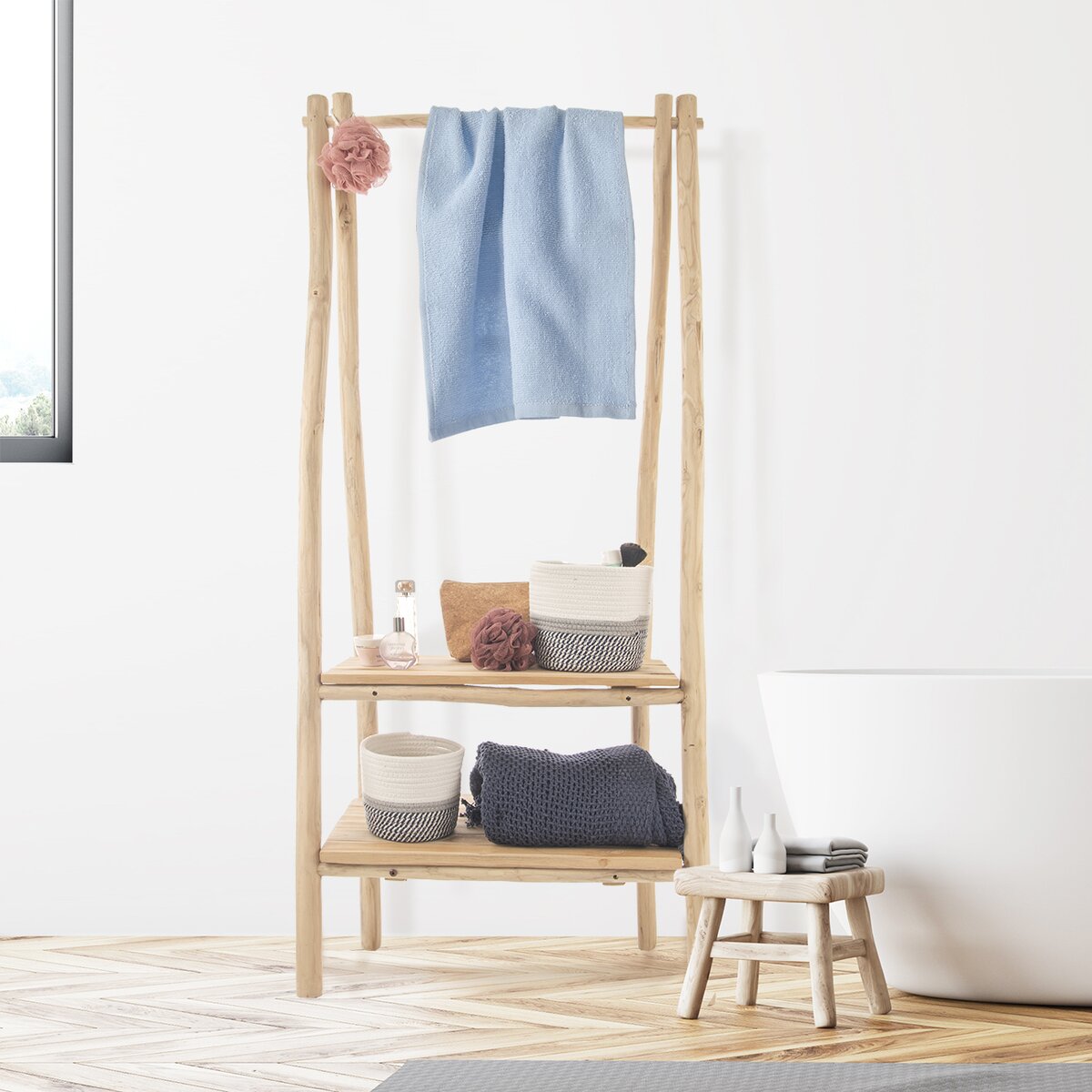 Kód produktu 001310Drevený stojan s 2 policami skvele využijete ako dekoráciu, namiesto nemého sluhu, ako časť nábytku. Doma, na terase, balkóne aj v kúpeľni.