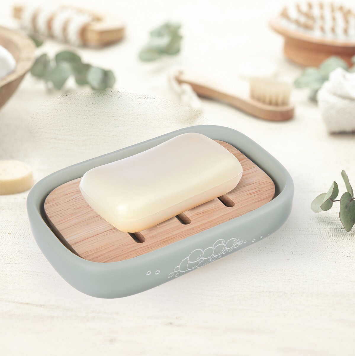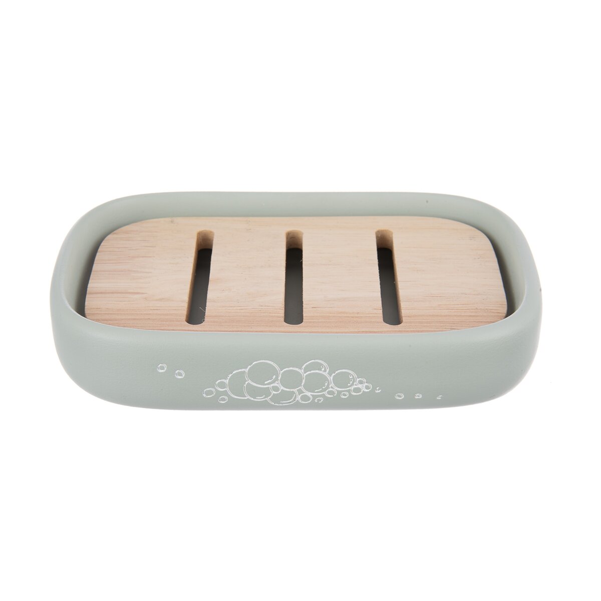 Kód produktu 532149Držiak na tuhé mydlo z polyresinu z kolekcie GREENISH je doplnený vložkou s otvormi z gumovníkového dreva.