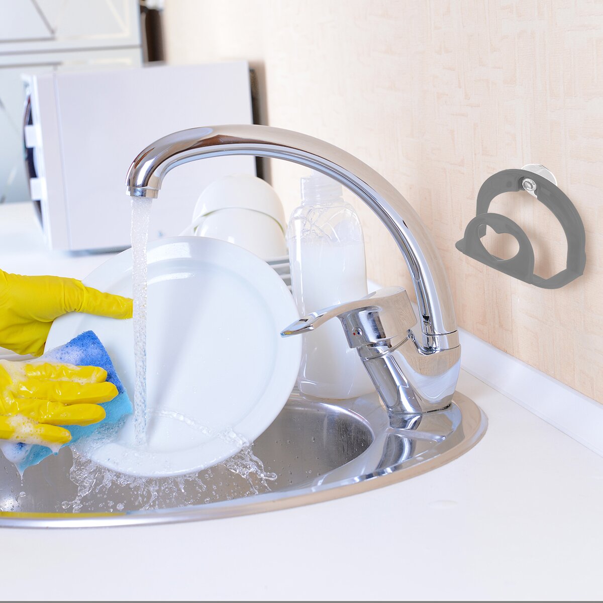 Plastový držiak s prísavkou je možné pripevniť na hladkú, odmastenú stenu, kachličky alebo na stenu drezu. Je vyrobený z PP a PVC. Či už ho pripevníte pri dreze v kuchyni, kúpeľni alebo pri výpuste vody na záhrade, kde je treba umývať zeleninu od hliny, čistiť misky pre zvieratá a pod.