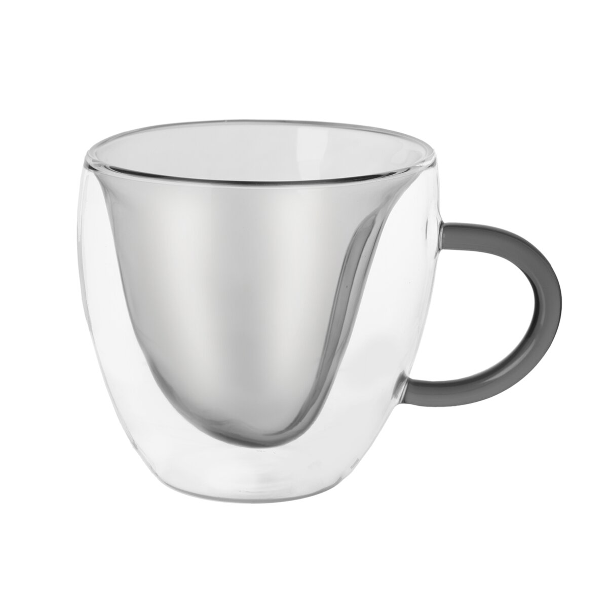 Tieto hrnčeky v kombinácii číreho a šedého skla dodávame v sade 2 kusov. Navyše je vonkajšia stena hrnčeka chladnejšia, takže vás ruka pri pití nebude páliť. A čo viac, zvláštnosťou je vnútorná časť tvarovaná do srdiečka, ktoré vynikne predovšetkým pri pohľade zhora.