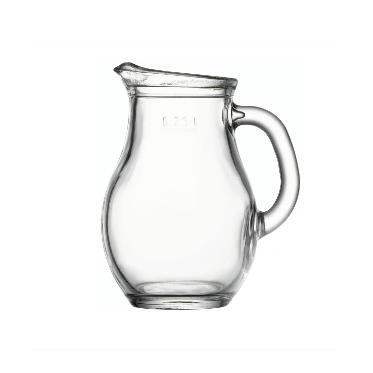 Kód produktu 126618Klasický sklenený džbán s mierkou 0,25 l, s výlevkou a uchom, vhodný na prípravu a podávanie malého množstva nápojov, domácich štiav, sirupov, zálievok i marinád.