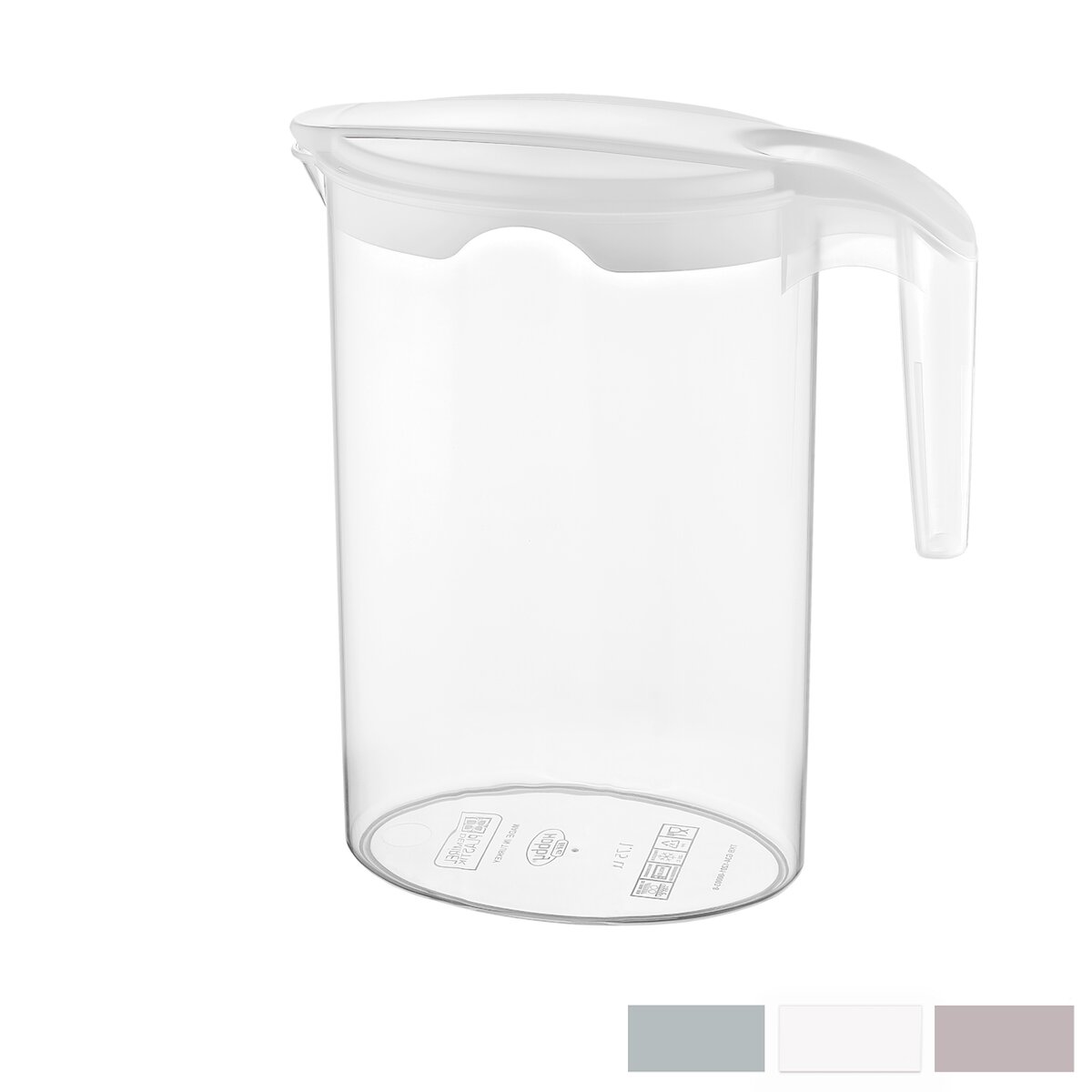 Kód produktu 121949Plastový transparentný džbán s objemom 1,75 l, s uchom a výlevkou, uzavretý praktickým farebným viečkom.