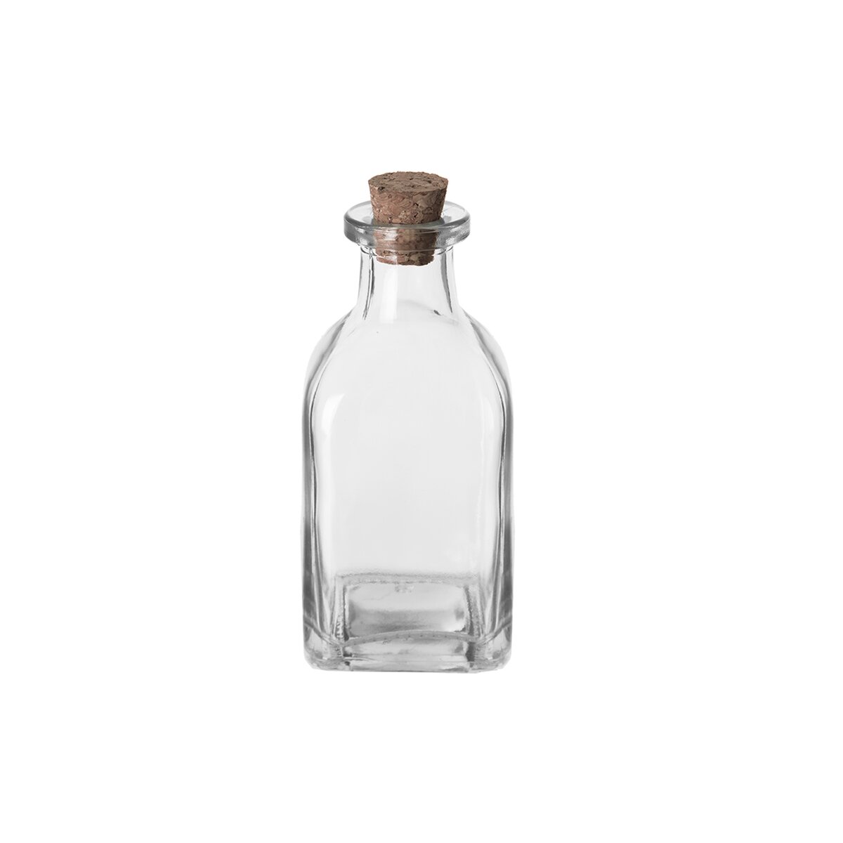 Malá fľaša z číreho skla ponúka všestranné využitie. Má korkovú zátku a môžete ju použiť na uskladnenie tekutín, ako sú napríklad domáce likéry, šťavy, ochutené oleje aj bylinné tinktúry.