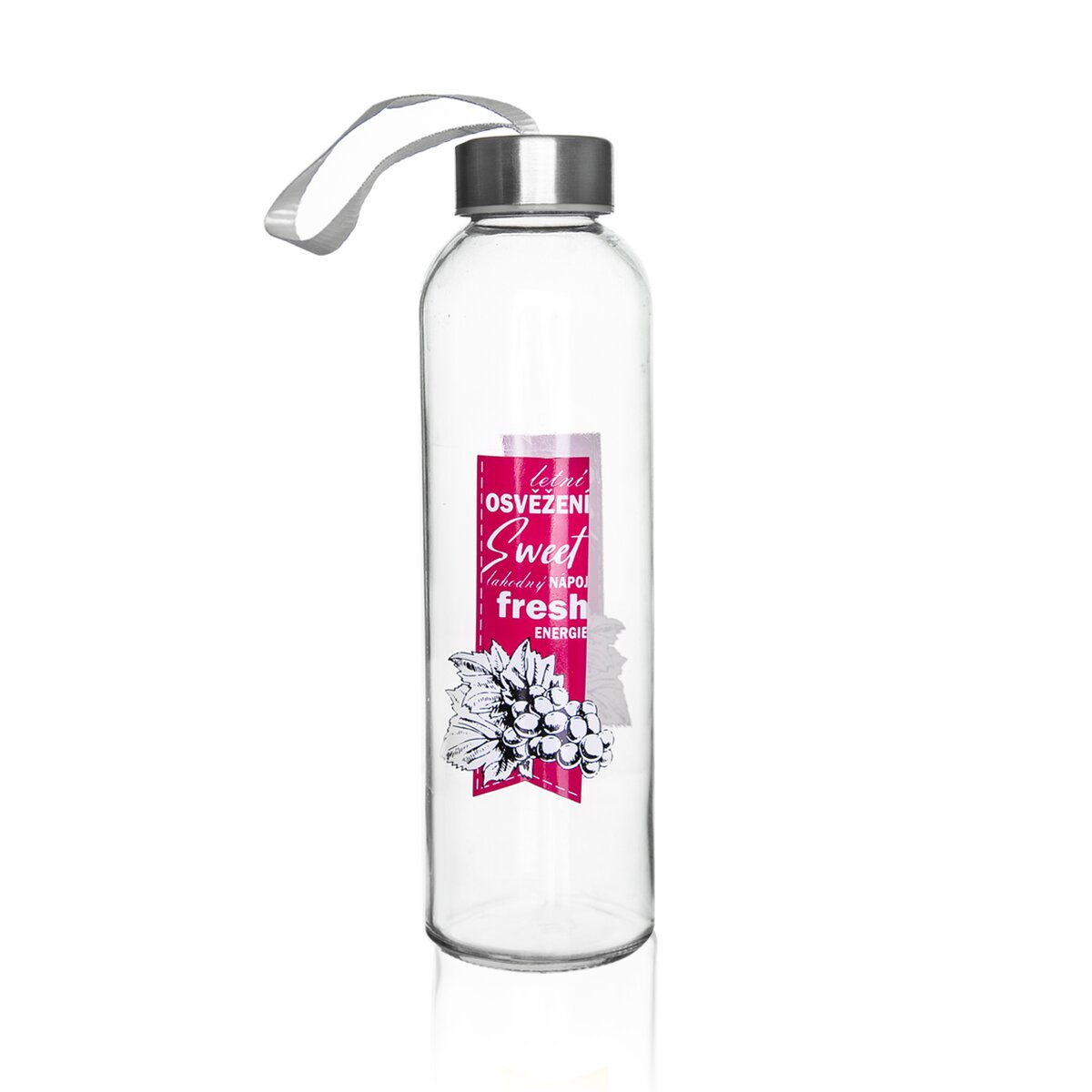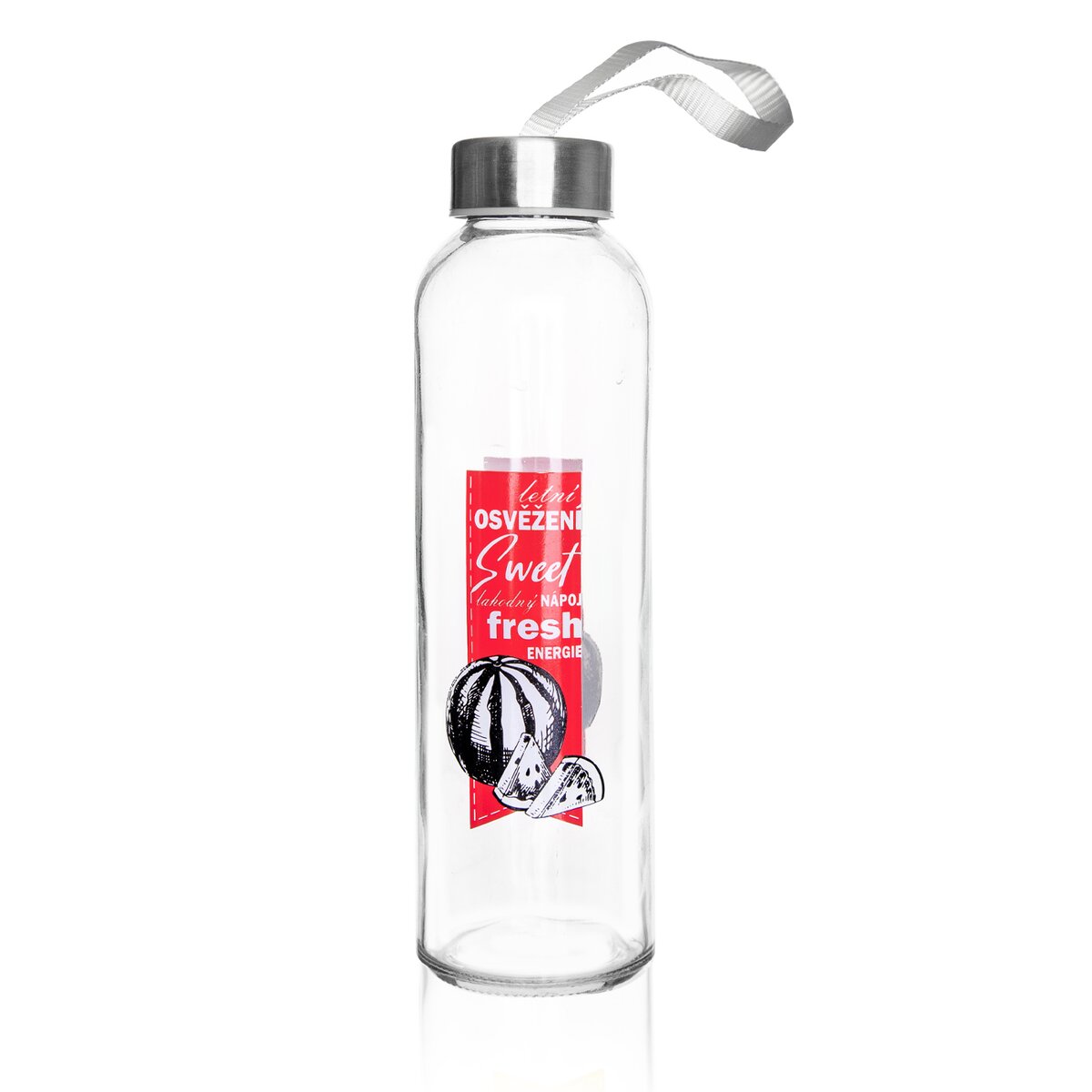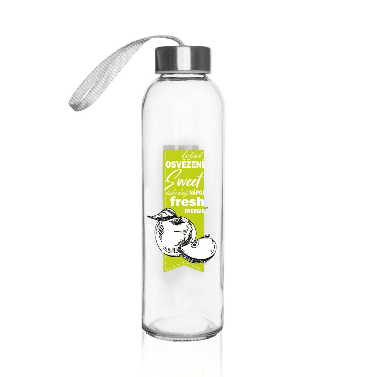 Kód produktu 125999Sklenená fľaša FRESH s objemom 0,55 l s farebným dekorom a kovovým viečkom na závit.