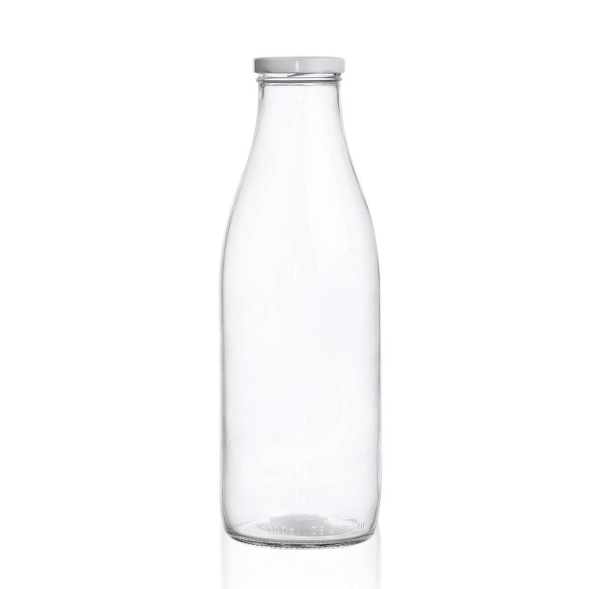 Fľaša z číreho skla, ktorá sa hodí ako na uchovanie a podávanie čerstvého mlieka, tak aj na domáce šťavy, malinovky a ľadového čaju.