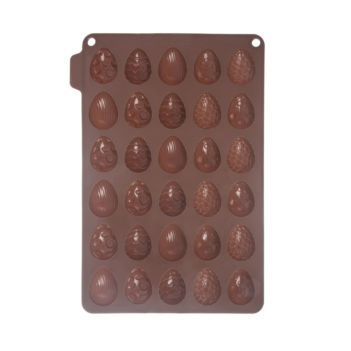 Kód produktu 154407Nepriľnavá hnedá silikónová forma je určená na výrobu originálnych čokoládových praliniek v tvare veľkonočných vajíčok, možno v nej upiecť aj drobné sušienky ku káve.