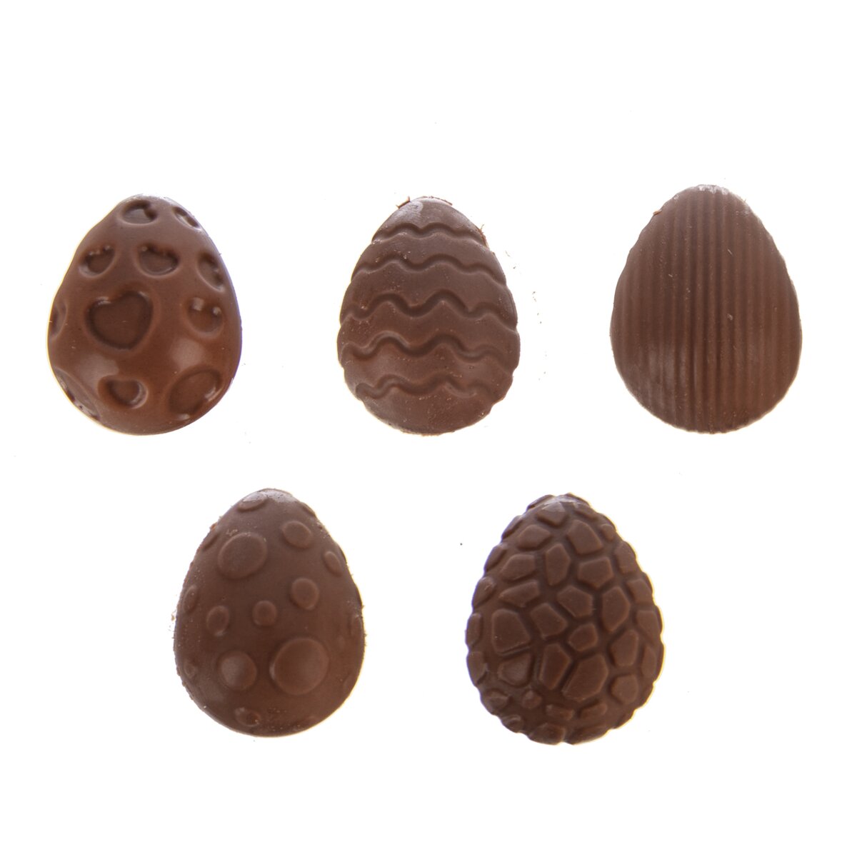 Stačí rozpustenú čokoládu naliať, pridať obľúbené ingrediencie, orechy, sušené ovocie, sušenú levanduľu a pod. a nechať stuhnúť v chladničke. Jednotlivé vajíčka z pružnej formy jednoducho vylúpnete. Dajú sa tiež spojiť dve polovice a budete mať razom vajíčko celé, s pekným plastickým reliéfom. Hotové vajíčko má veľkosť 3,3x2,5 cm a môže slúžiť nielen na ozdobenie jarných cupcakov, ale aj ako drobná výslužka pre šibačov.