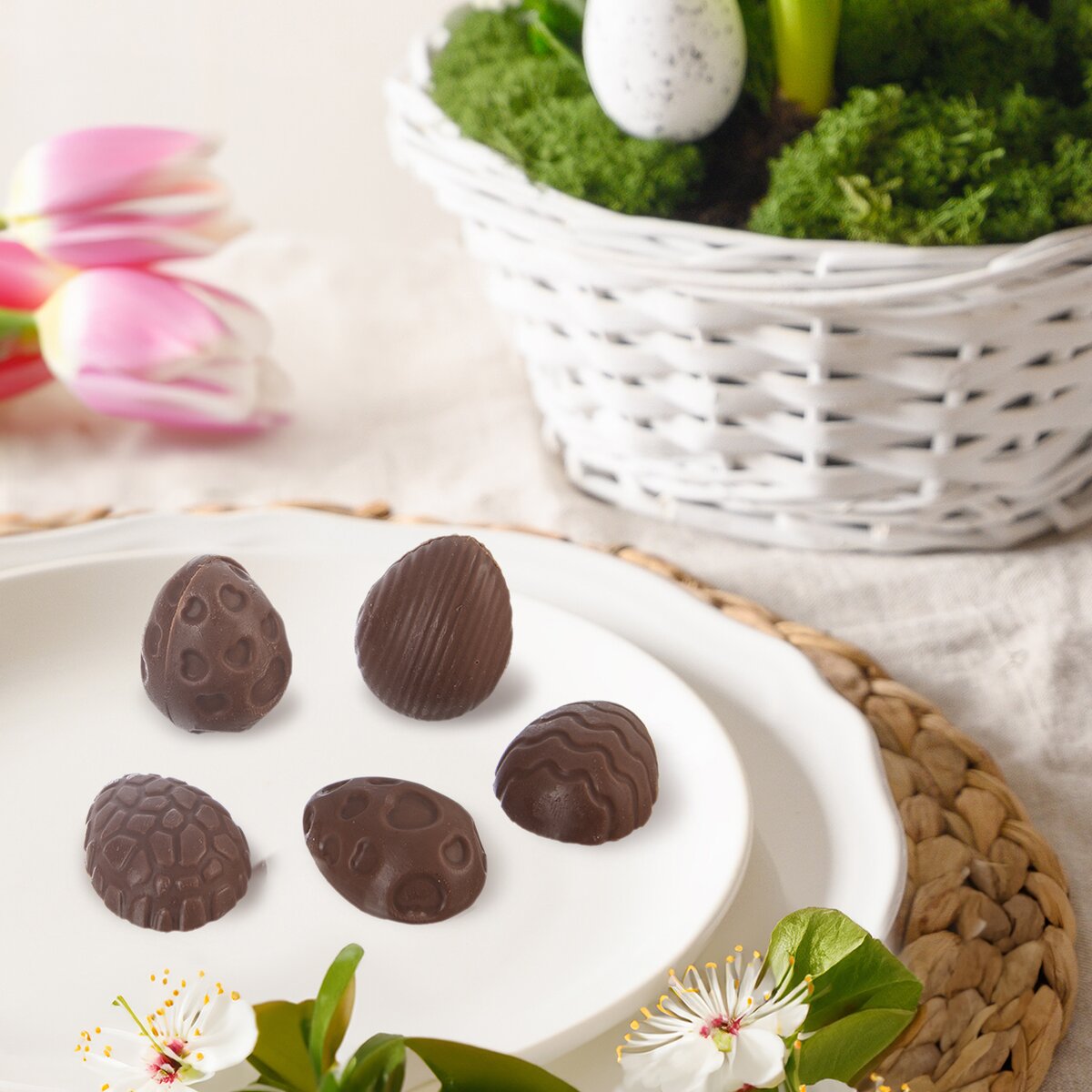 Viac informáciíAk ste milovníkom kvalitnej horkej čokolády alebo jemných mliečnych praliniek, ktoré sa rozplynú na jazyku, tak táto nepriľnavá forma plná veľkonočných vajíčok vás určite poteší.