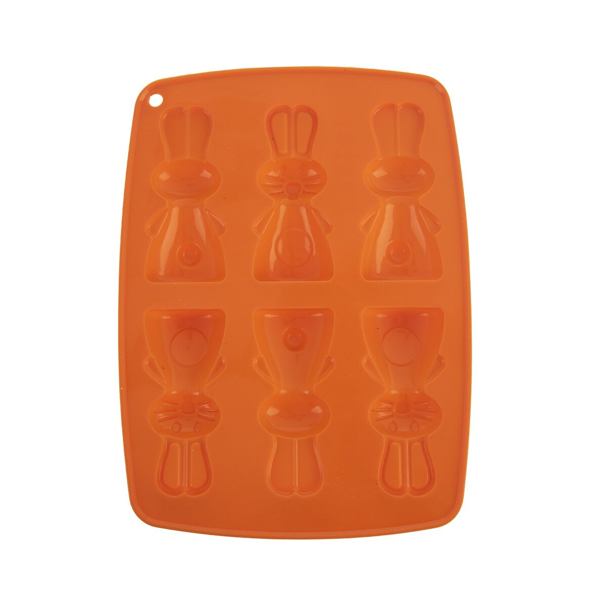 Kód produktu 151785Nepriľnavá oranžová forma zo silikónu, vhodná na prípravu čokoládových zajačikov aj na pečenie sladkých dobrôt.