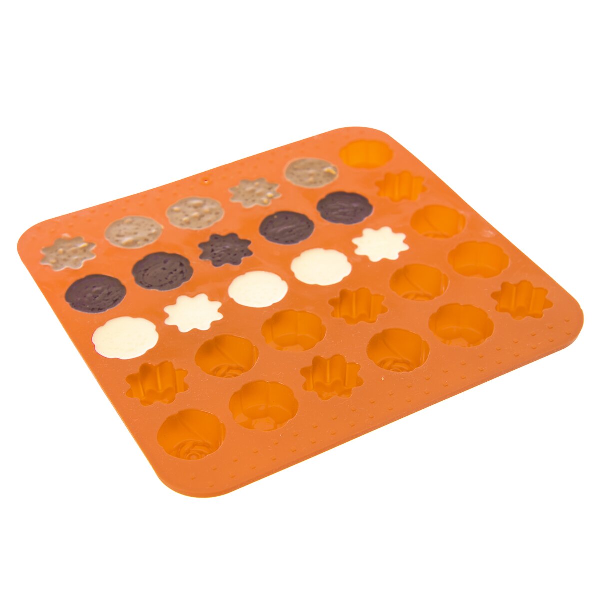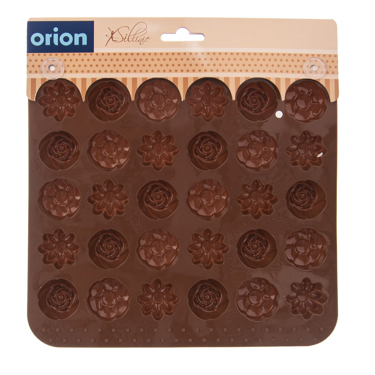 Kód produktu 120037Silikónová forma vám vytvorí krásne kvety z bielej alebo tmavej čokolády. Môžete v nej aj rovnako dobre tieto tvary upiecť z cesta. Materiál: silikón. 30 kvetov. Znáša vysoké teploty (od -40 °C do +230 °C), nepohlcuje chute ani vône z použitých potravín. Vhodná do umývačky riadu. Rozmery: 21x20,5x1,5 cm, kvet pr. cca 2,8 cm.