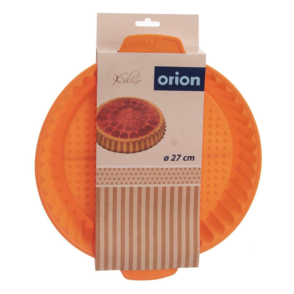 Oranžová silikónová forma s priemerom 27 cm, s antiadhéznym povrchom, na prípravu dozlatista upečeného nadýchaného korpusu, ktorý má zvýšený okraj a po otočení možno vnútrajšok plniť tvarohom, ovocím zaliatym želatínou alebo inou obľúbenou náplňou. Naviac má spevnené dno, aby bol korpus rovný.