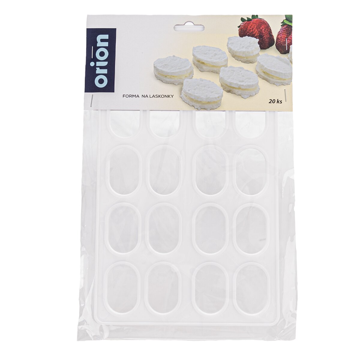 Kód produktu 124921Šikovná forma na prípravu 20 ks oválnych snehových laskoniek naraz, veľkosť jednej laskonky 4,5x3 cm. Možnosť umývať v umývačke.