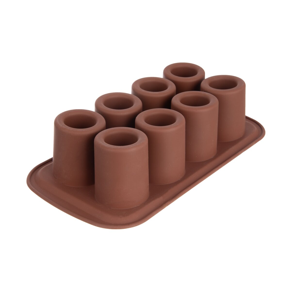 Kód produktu 154474Nepriľnavá silikónová forma na prípravu likérových špičiek v hnedej farbe umožní upiecť 8 kusov sladkých korpusov naraz. Možno ju tiež vylievať čokoládou alebo na výrobu zaujímavých ľadových panákov naplniť vodou a nechať zamraziť.