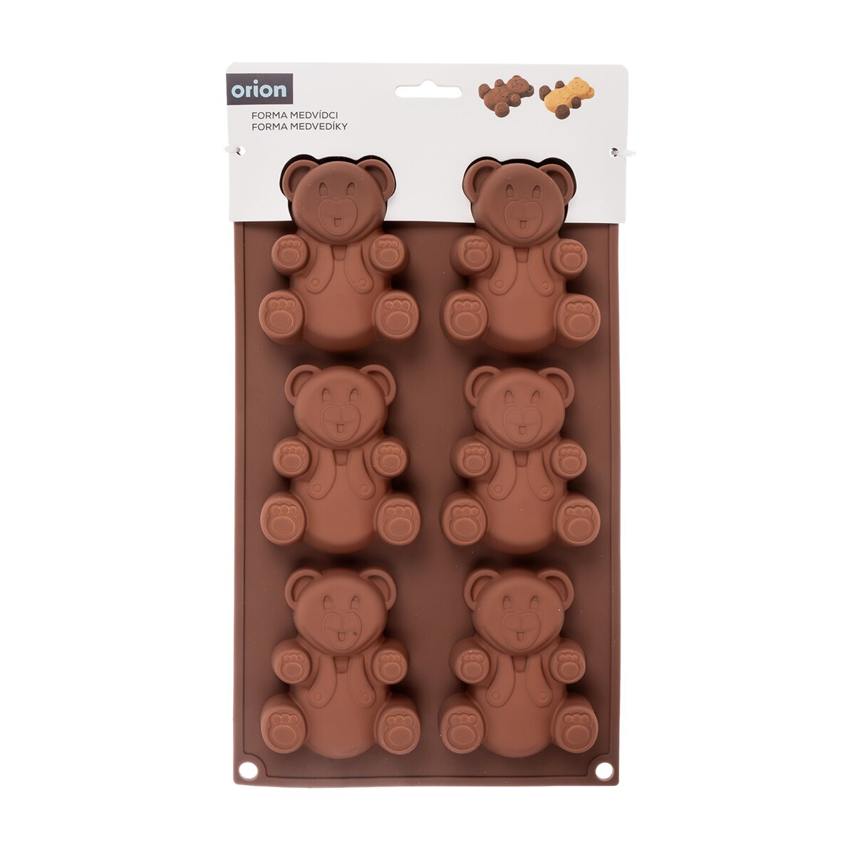 Kód produktu 154440Nepriľnavá hnedá silikónová forma na pečenie 6 ks nadýchaných piškótových medvedíkov alebo na prípravu ľadovej ovocnej drene nielen na letné osvieženie.