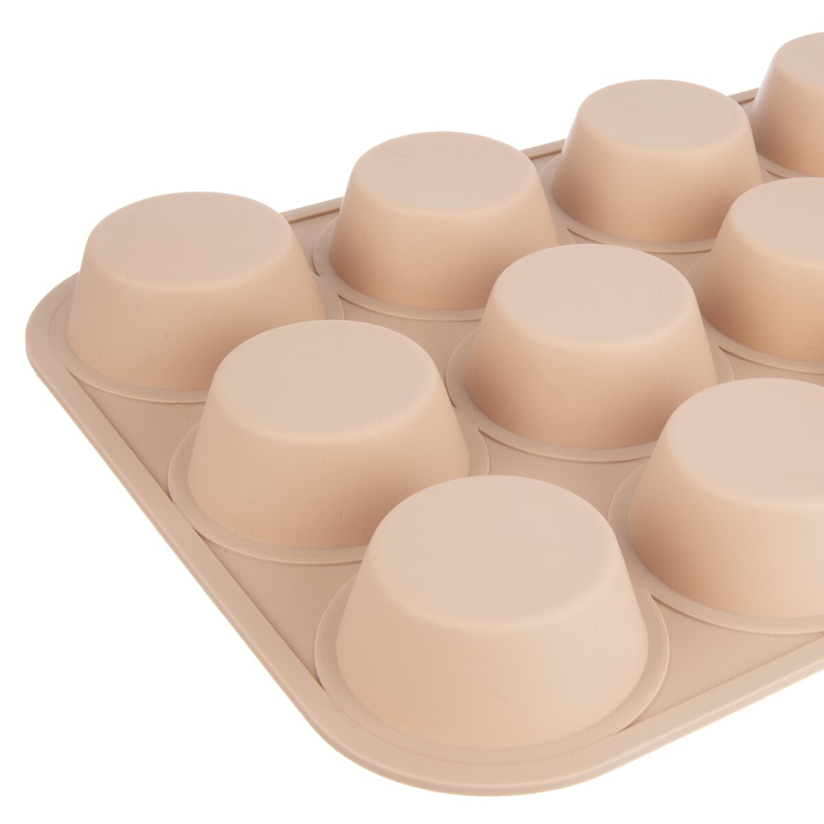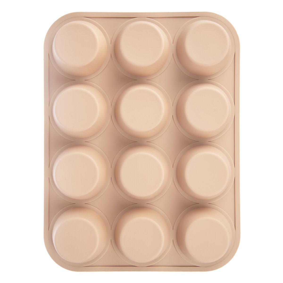 Kód produktu 154462Nepriľnavá silikónová forma v béžovej farbe pre rýchle a rovnomerné pečenie 12 ks muffinov v sladkej alebo slanej verzii.