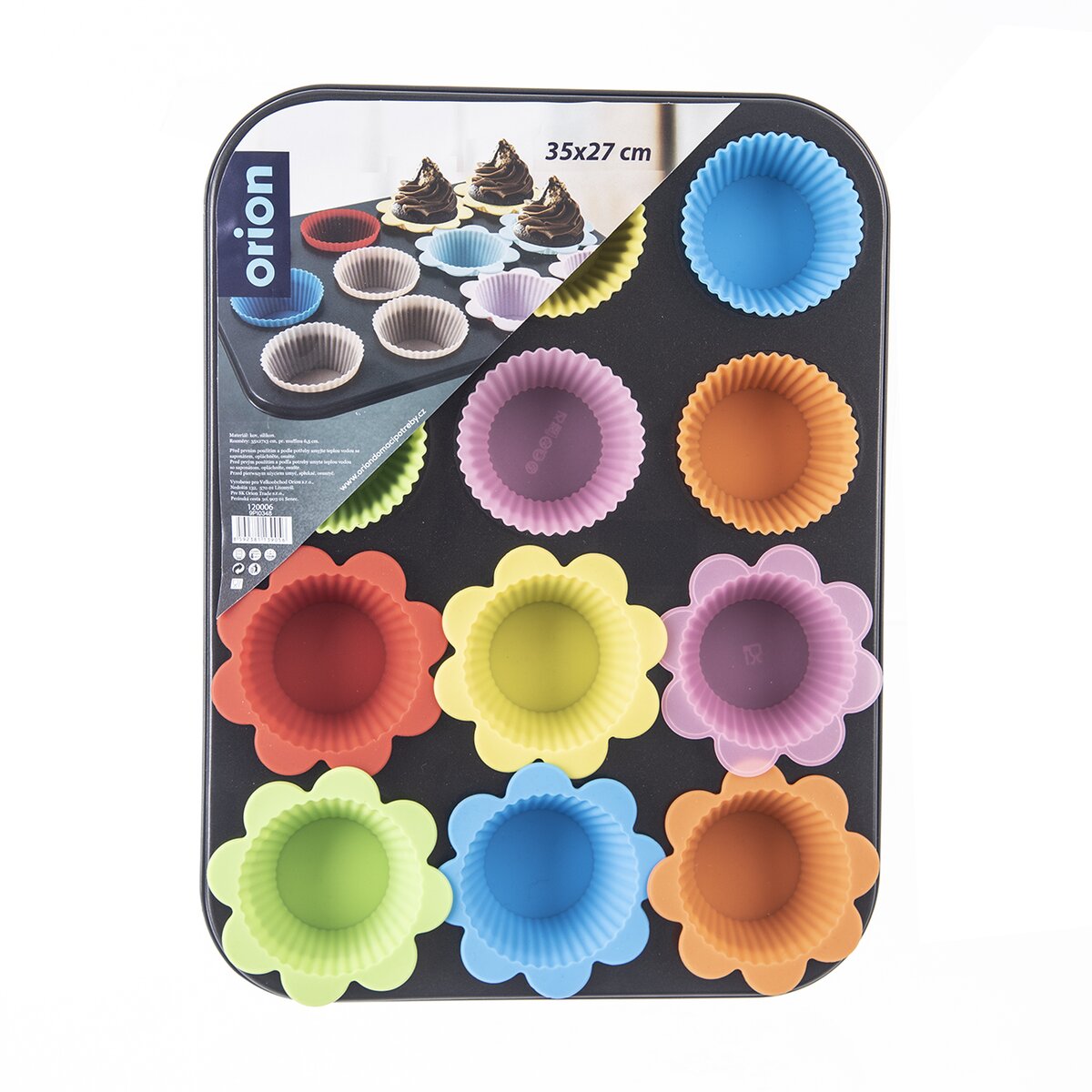 Kód produktu 120006Nepriľnavá kovová forma na muffiny vrátane 12 ks silikónových košíčkov na jednoduché a rýchle pečenie vláčnych muffinov aj nadýchaných Cupcake.