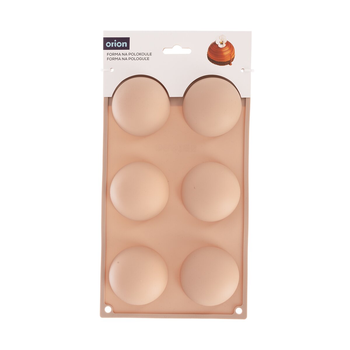 Kód produktu 154428Nepriľnavá béžová silikónová forma je určená na rýchle a rovnomerné pečenie 6 ks tort, ale aj na prípravu smotanových dezertov alebo čokoládového fondantu. Jedna pologuľa má priemer 6,5 cm.