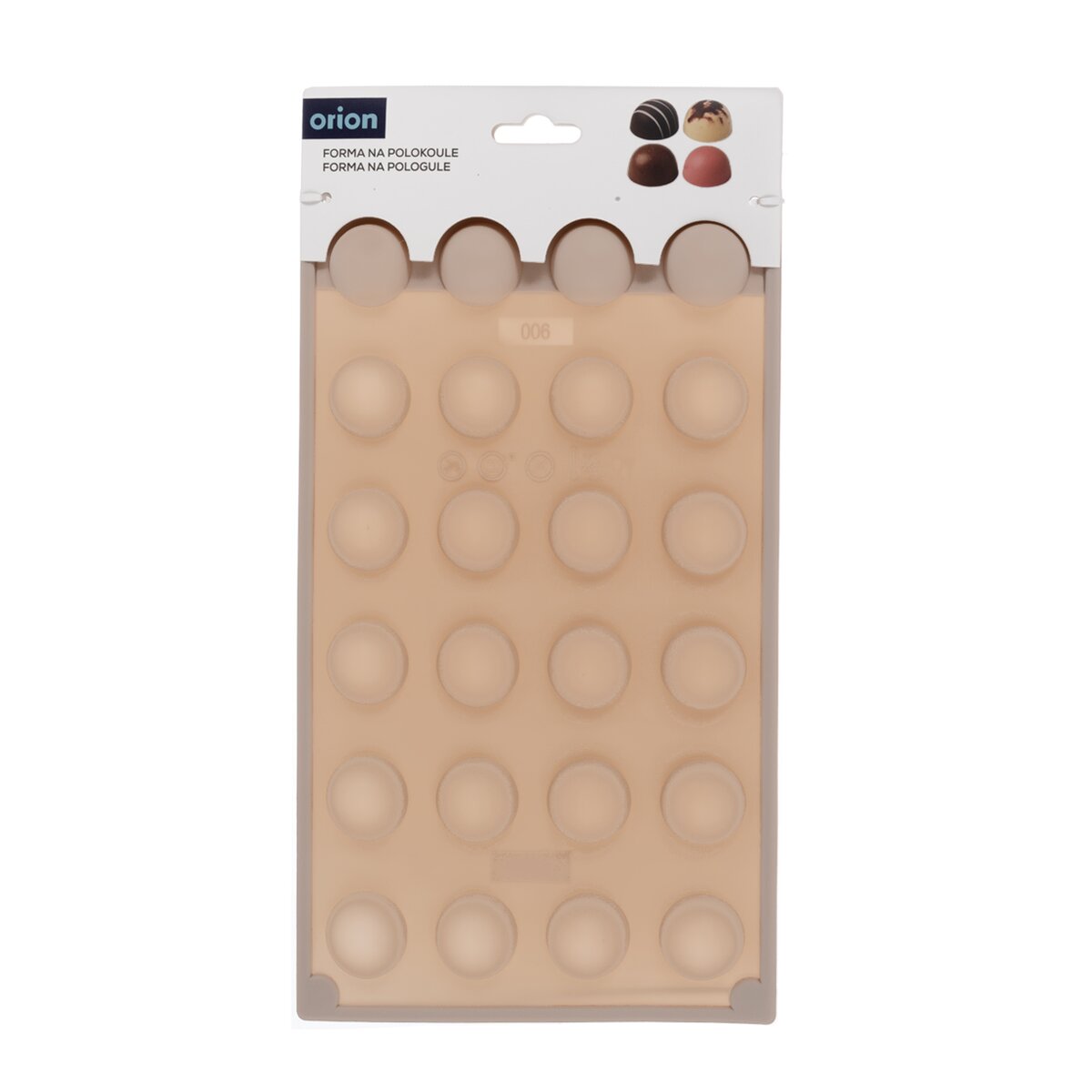 Kód produktu 154442Nepriľnavá béžová silikónová forma je vhodná na pečenie 24 ks malých sušienok alebo na výrobu originálnych čokoládových praliniek a cukríkov v tvare pologule.