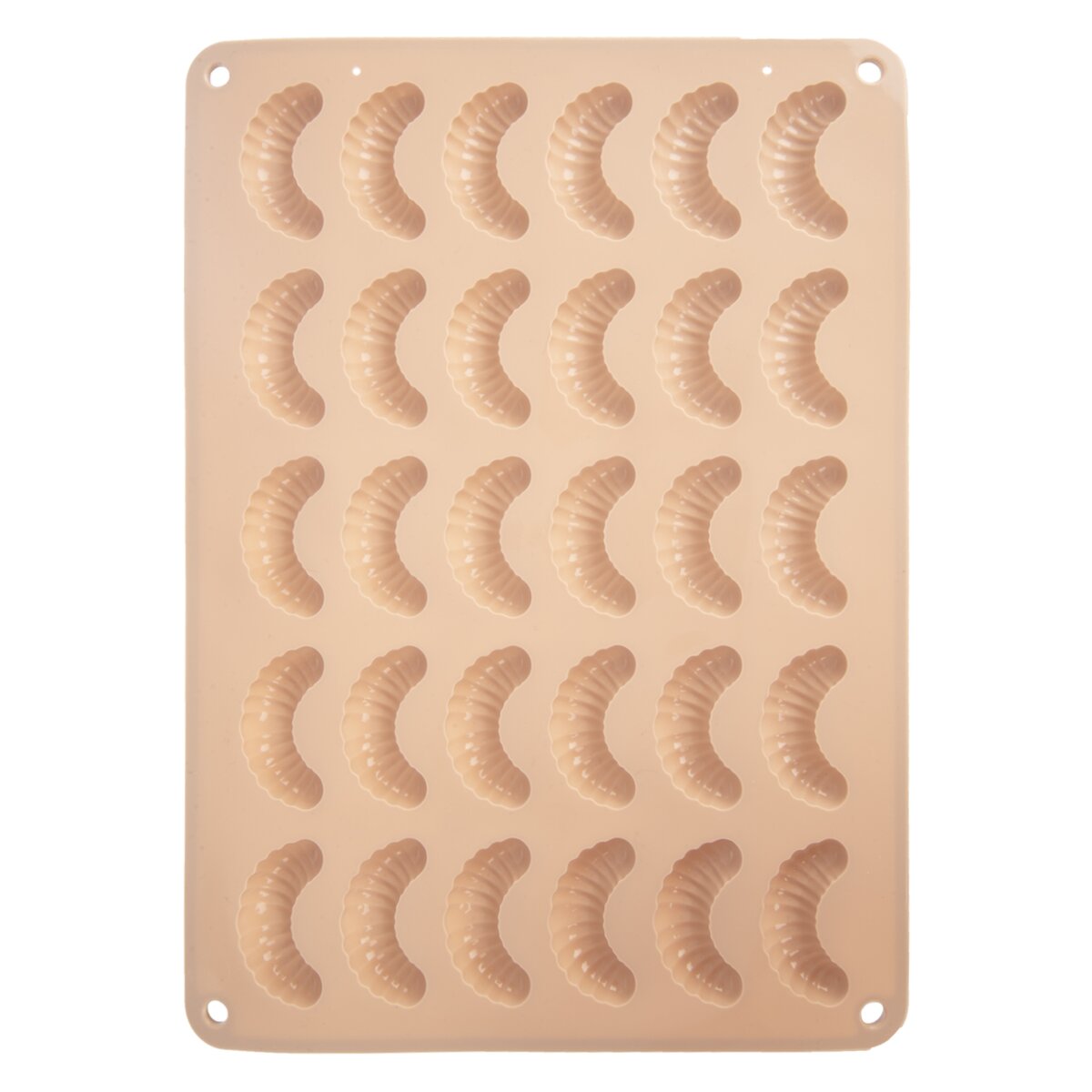 Kód produktu 154465Nepriľnavá béžová silikónová forma umožní naraz upiecť 30 ks vanilkových, čokoládových alebo orechových rožkov, poradí si aj s výrobou domácej čokolády v tomto tvare.