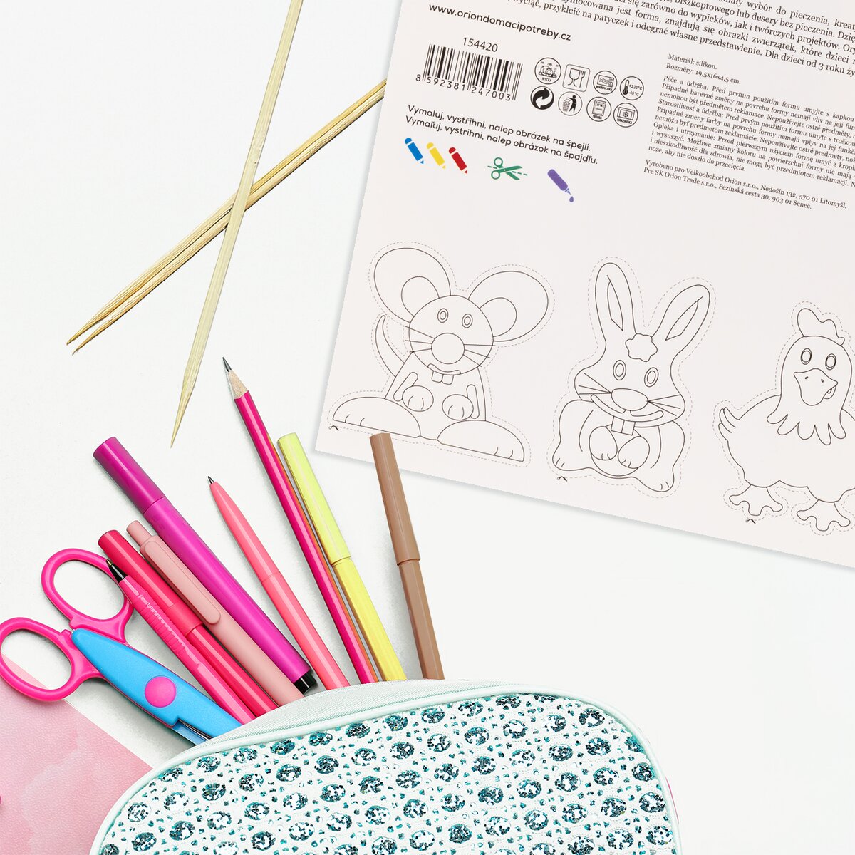 Orion tip: na zadnej strane papierovej karty, na ktorej je forma pripevnená, sú pre deti pripravené obrázky zvieratiek, ktoré si môžu podľa vlastnej fantázie vyfarbiť, vystrihnúť, nalepiť na špajli a hrať s nimi divadlo. Vhodné pre deti od 3 rokov.