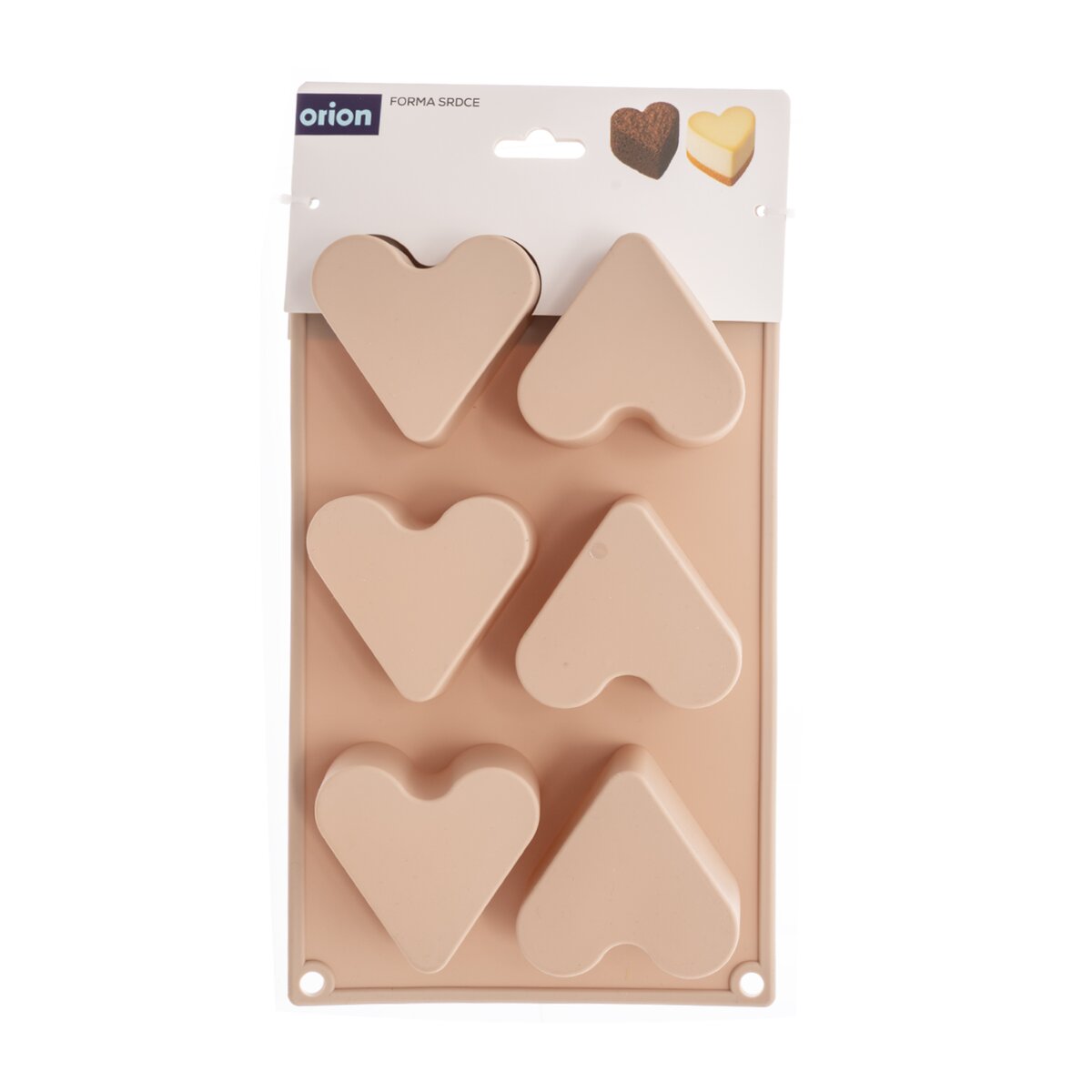 Kód produktu 154454Nepriľnavá béžová silikónová forma je určená na rýchle a rovnomerné pečenie 6 ks tort či muffinov v tvare srdca, ale aj na prípravu smotanových dezertov alebo čokoládového fondantu. Jedna formička má rozmer 7,5x7,5 cm.