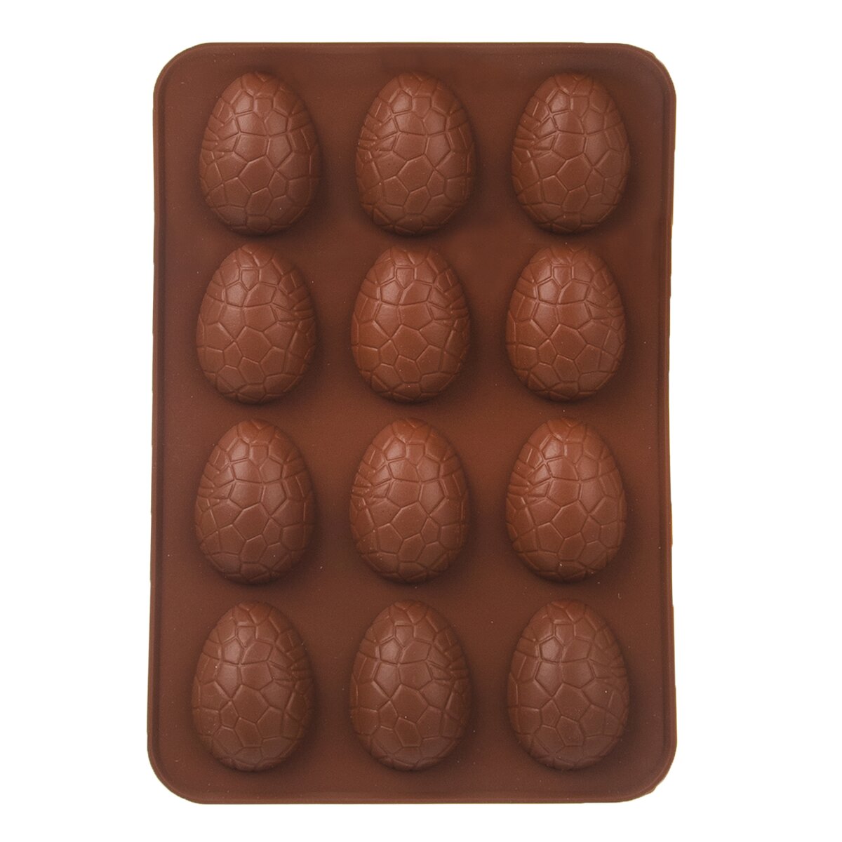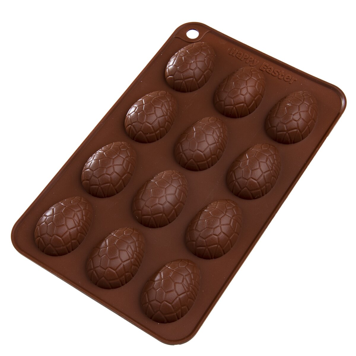 Kód produktu 151765Nepriľnavá hnedá veľkonočná silikónová forma pre rýchle a rovnomerné pečenie 12 ks sušienok v tvare vajíčka alebo na výrobu originálnej čokolády.