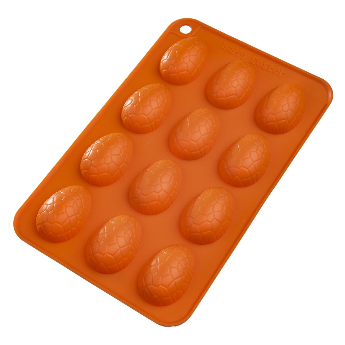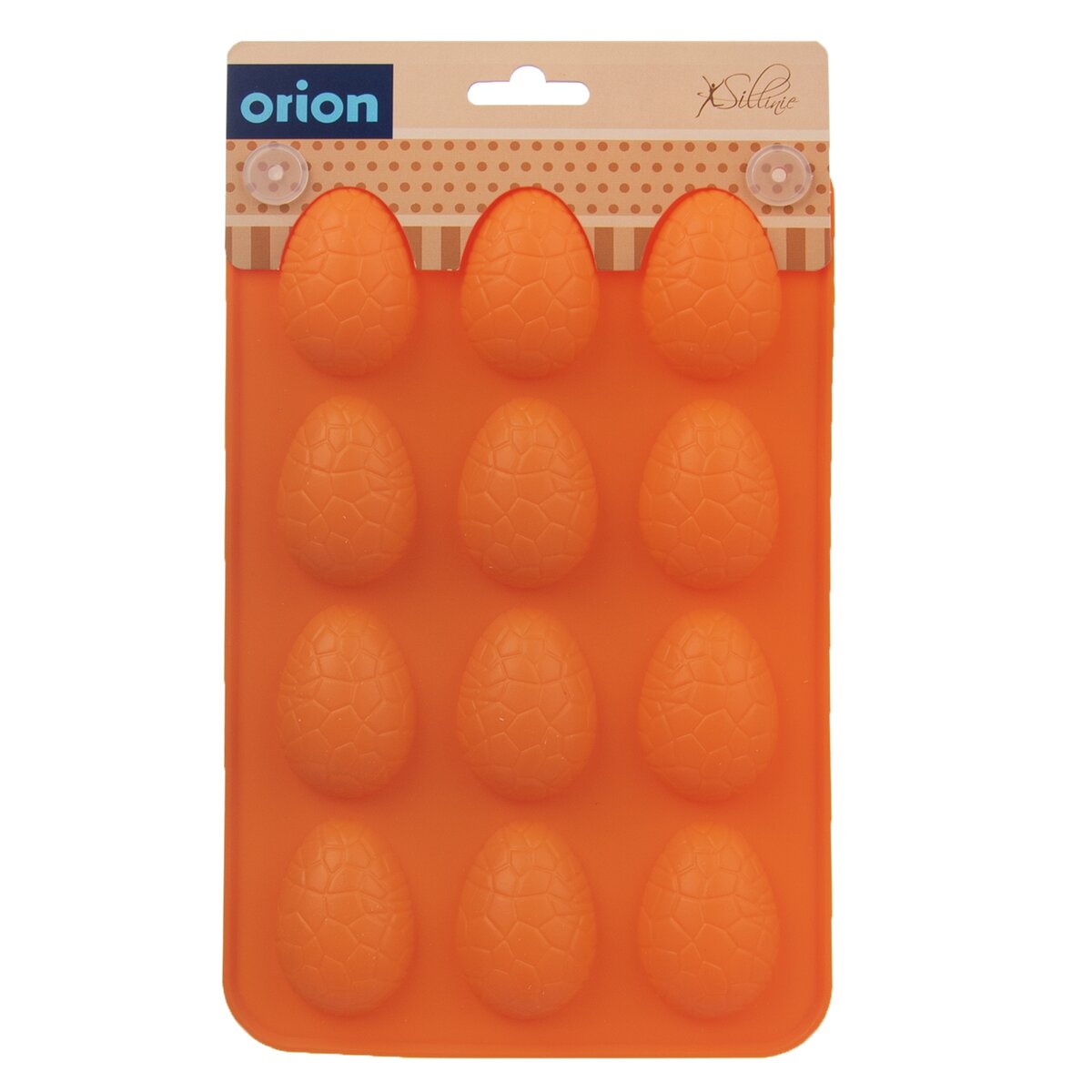 Kód produktu 151766Nepriľnavá oranžová veľkonočná silikónová forma pre rýchle a rovnomerné pečenie 12 ks sušienok v tvare vajíčka alebo na výrobu originálnej čokolády.