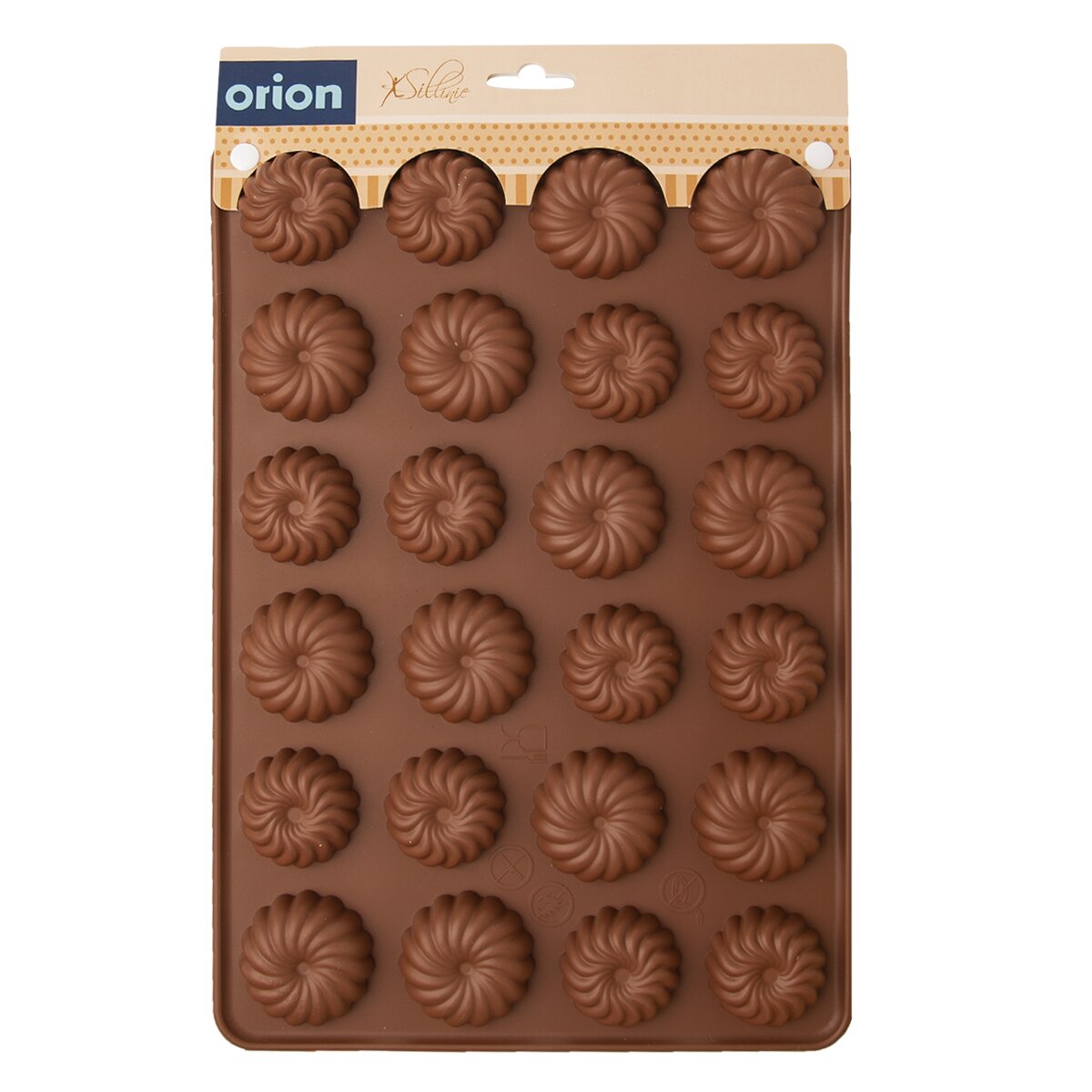 Kód produktu 151730Nepriľnavá hnedá silikónová forma pre rýchle a rovnomerné pečenie 24 ks malých sušienok v tvare venčeka s prepracovanými detailmi.