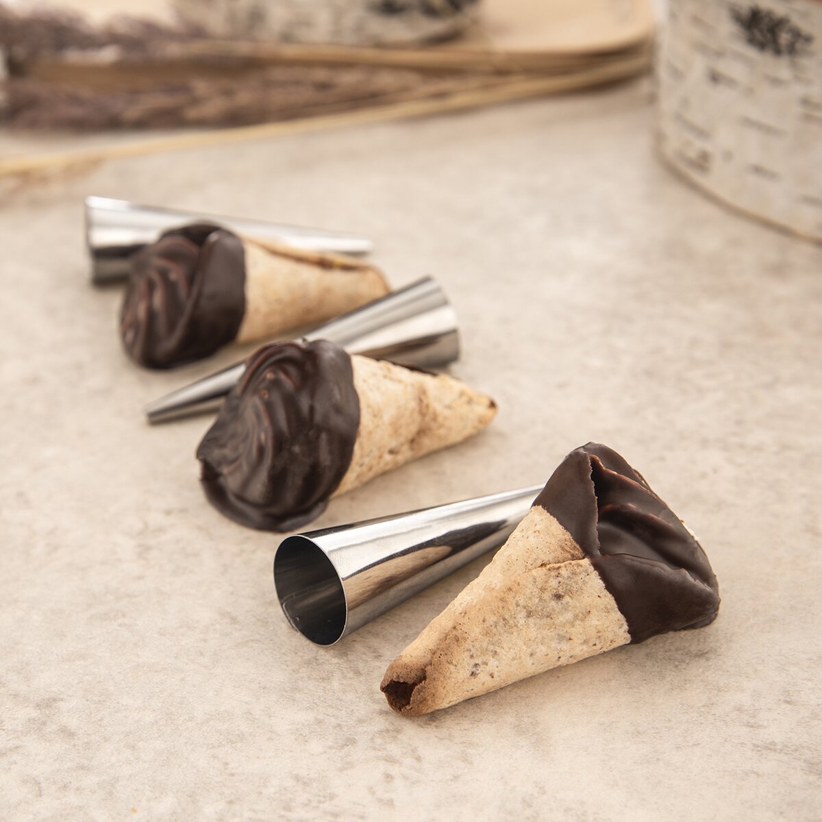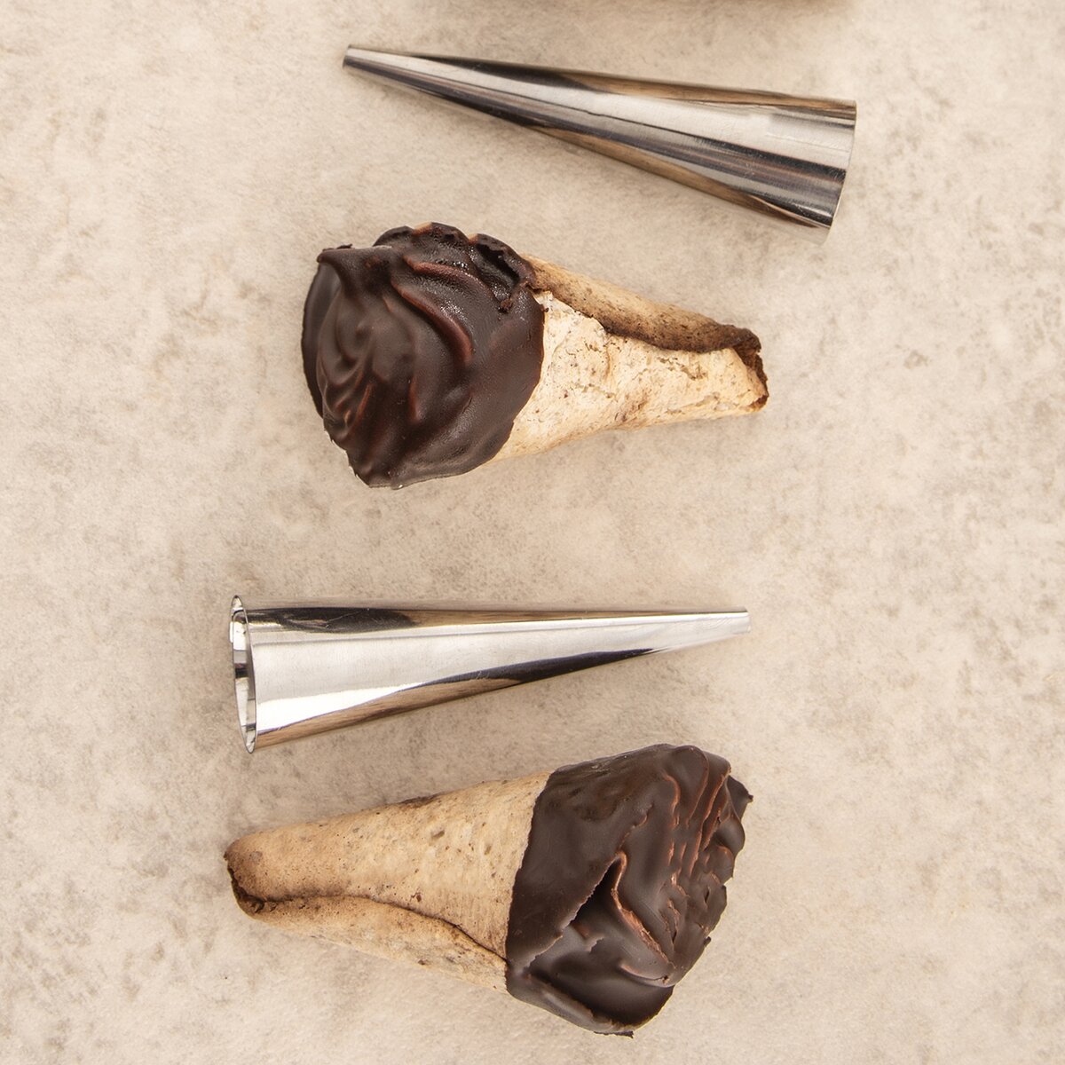 Kód produktu 153003Sada 3 nerezových foriem na pečenie sladkých i slaných kornútkov, napríklad z lístkového, grilážového či iného cesta.