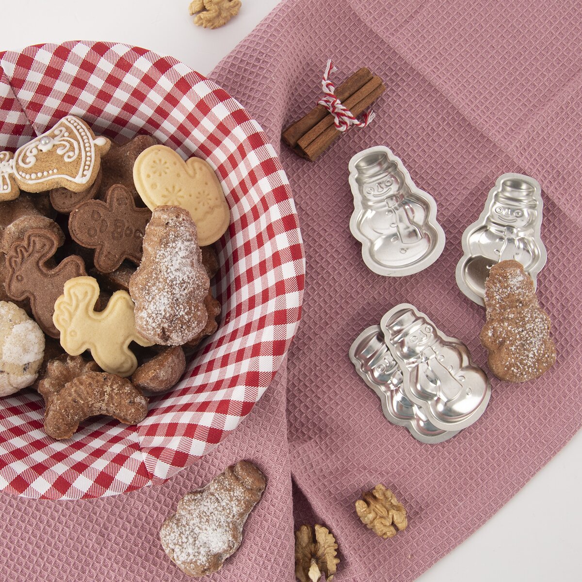 Klasické české pocínované formičky v tvare roztomilého snehuliaka, v ktorých možno upiecť tradičné orieškové a čokoládové labky, jemné madlenky, polomáčané sušienky, ale možno ich vyliať aj čokoládou a vyrobiť si svoje vlastné sviatočné pralinky.