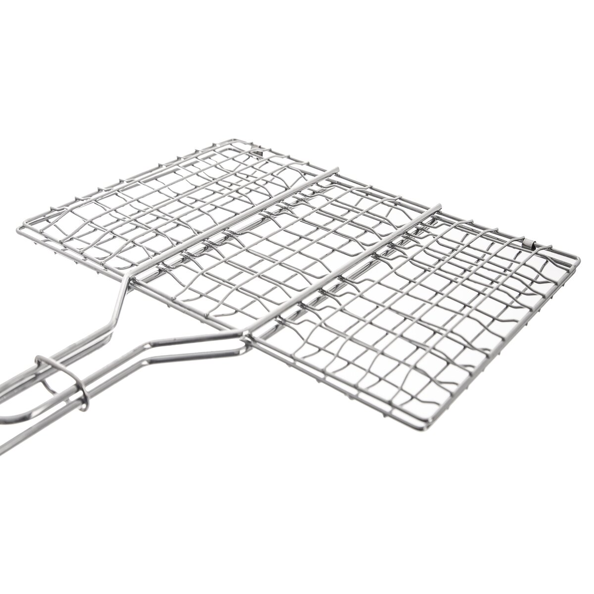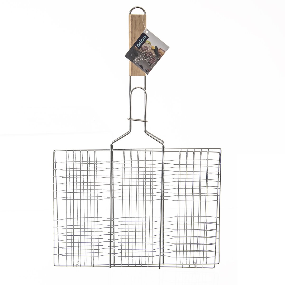 Kód produktu 111184Kovová pochrómovaná mriežka na grilovanie hamburgerov, mäsa, zeleniny i rýb uľahčí otáčanie a rovnomerné grilovanie z oboch strán. Dlhá rukoväť s držadlom z gumovníkového dreva zabráni popáleniu rúk od žiaru.