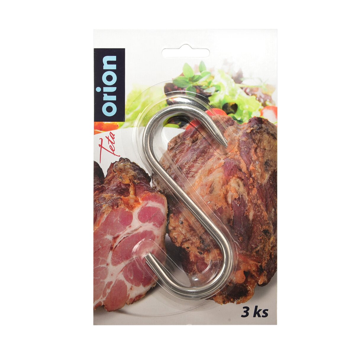 Tento nerezový háčik má výšku 11,5 cm a šírku 8,4 cm. Hodí sa napríklad na zavesenie mäsa do udiarne. Na jednej strane má ostrý hrot, ktorý ľahko prejde aj väčším kusom mäsa. Sada obsahuje tri kusy.