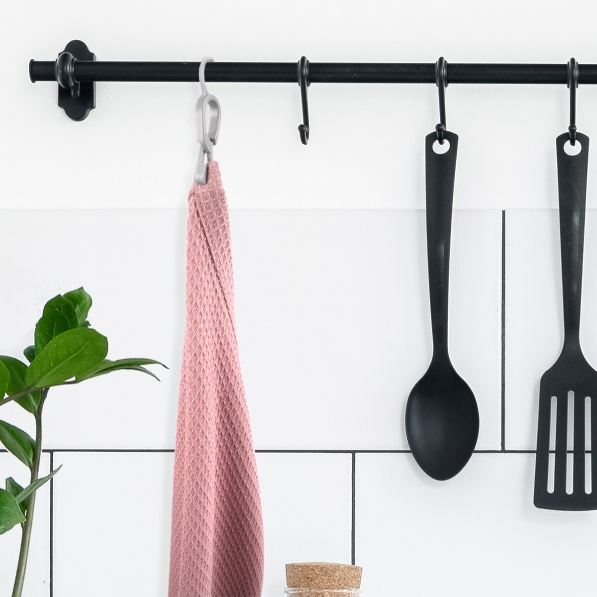 Niekedy sú v domácnosti utierky či uteráky bez pútok alebo sa vám nechcú pútka prišívať. Potom určite oceníte sadu háčikov, ktoré stačí stlačením stlačiť, čím sa roztvoria drobné čeľuste a textíliu do neho lezca vložíte. V sade nájdete 4 biele a 4 šedé háčiky.