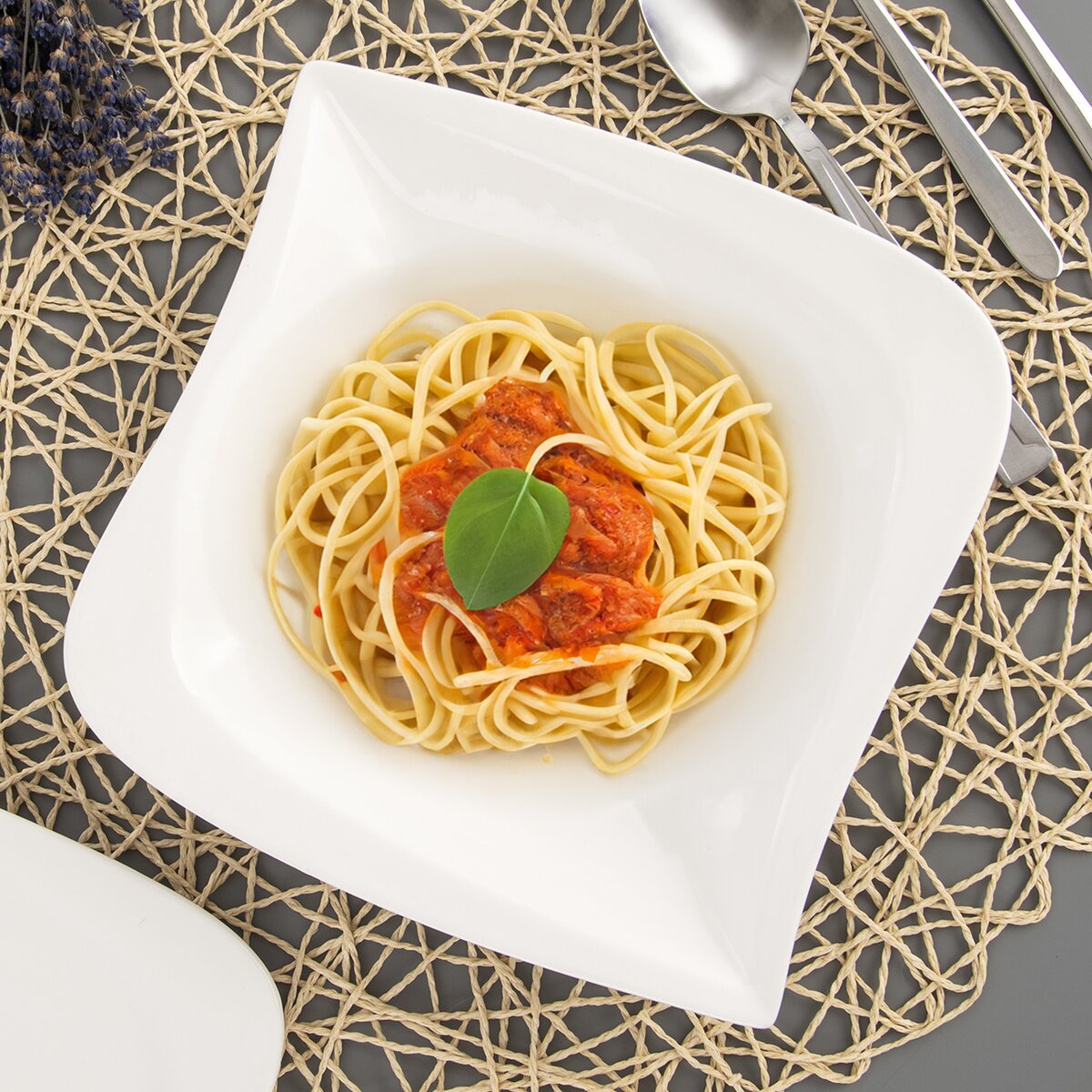 Na bielom porcelánovom tanieri si vychutnáte polievku, cestoviny aj omáčku. Možno ho použiť aj na terase pri servírovaní šalátov, čerstvého ovocia alebo pečiva ku grilovaným dobrotám.