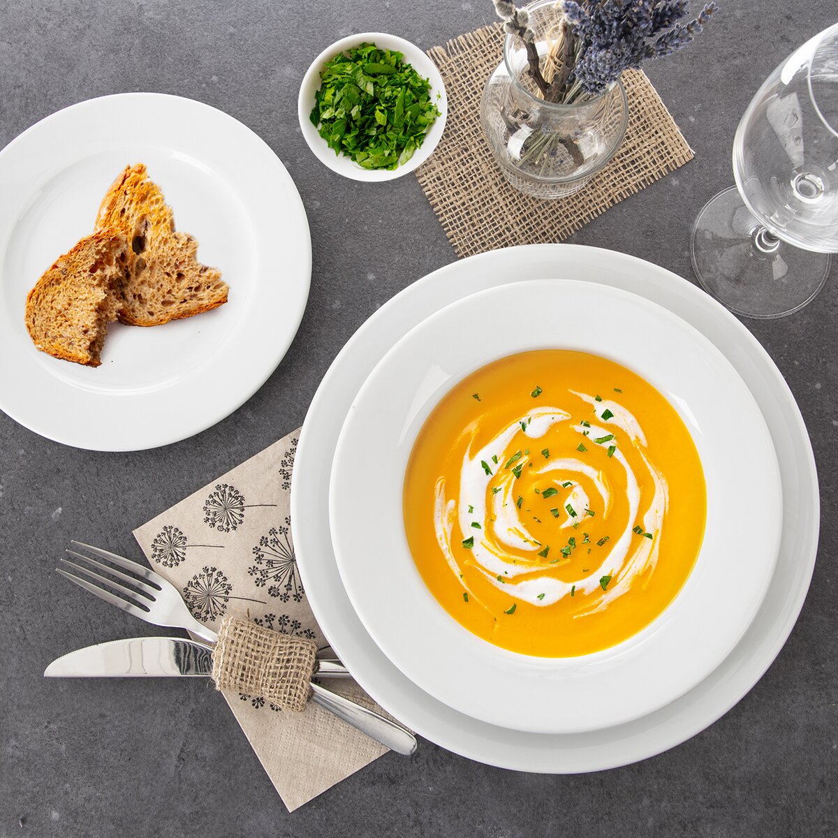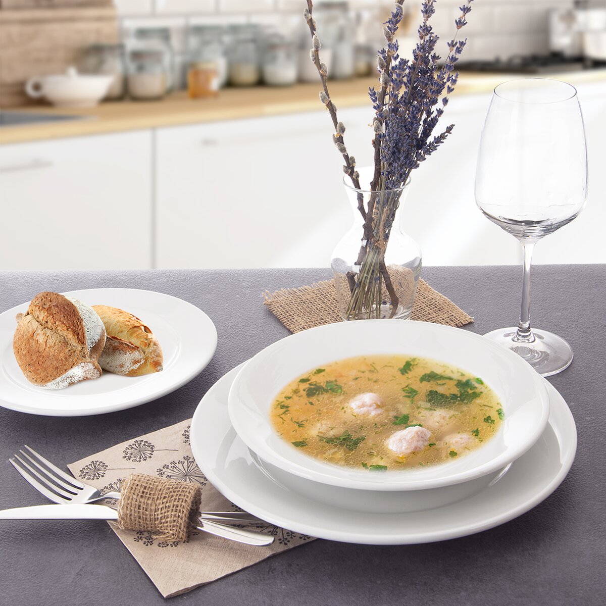 Klasický biely tanier sa hodí tam, kde je už s obľubou v podobnom štýle porcelánový riad používaný a potrebujete doplniť existujúci servis. Skvele vyzerá aj v kombinácii s farebnými alebo čiernymi taniermi.
