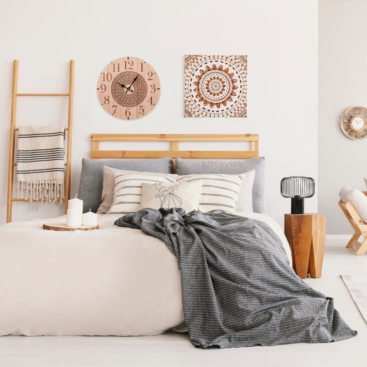 Kód produktu 130838Nástenné drevené hodiny so štýlovým dekorom MANDALA budú praktickým, ale aj dizajnovým prvkom.